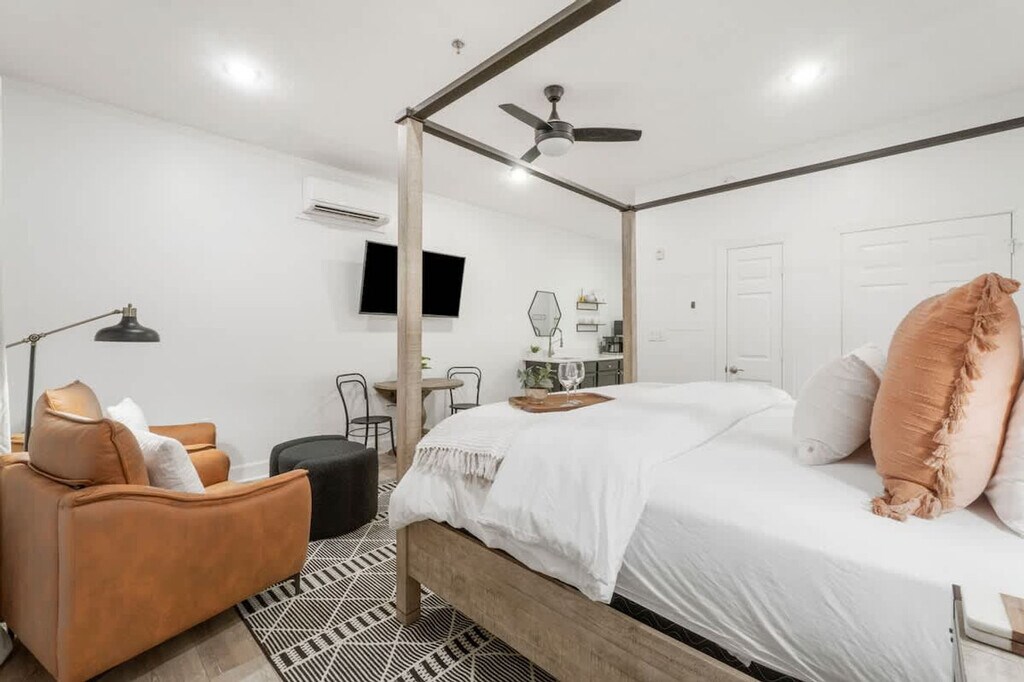 Feel at home in this boutique, elegantly designed studio in the heart of the Village of South Walton, offering a coveted coastal escape for two. This intimate sanctuary blends coastal charm with discreet sophistication. You’ll love the clean, modern lines and cozy layout, perfect for unwinding after an afternoon of sun and surf. The staff ensures high-speed internet and responsive service; however, guests seeking uninterrupted connectivity are advised to bring a hotspot, just in case. One vehicle is allowed, no exceptions. You're just a short walk from culinary gems like La Cocina, Wild Olives, Pescado, Havana Beach Bar & Grill, and more. Wander cobblestone alleys to discover Seacrest’s sundries and boutique shopping, or rent a bike toward the pristine sands of Rosemary and Alys Beach. A seasonal trolley makes beach access effortless, while deeded shoreline and exclusive amenities reinforce the prestige of your stay. Trolley service is unavailable from November 1 to February 28/29. If you are renting dates from March 1 to October 31, it is highly recommended that you secure beach chair service through Seacrest's exclusive vendor, LaDolce Vita, soon after booking to ensure you have reserved a space on the beach. On their site, select "30A South Walton," then select "The Villas at Sunset Beach and Seacrest Beach" (your beach is Seacrest). They will request our address to reserve your chairs, which will be found on your rental agreement after booking. Quiet hours are observed from 11 PM to 7 AM. Guests must be at least 25 years old to rent this apartment. There will be no compensation to guests if internet service is intermittent or completely lost due to the service provider. If you are traveling for business and the internet makes or breaks your visit, we recommend that you bring your own hotspot. [SI]