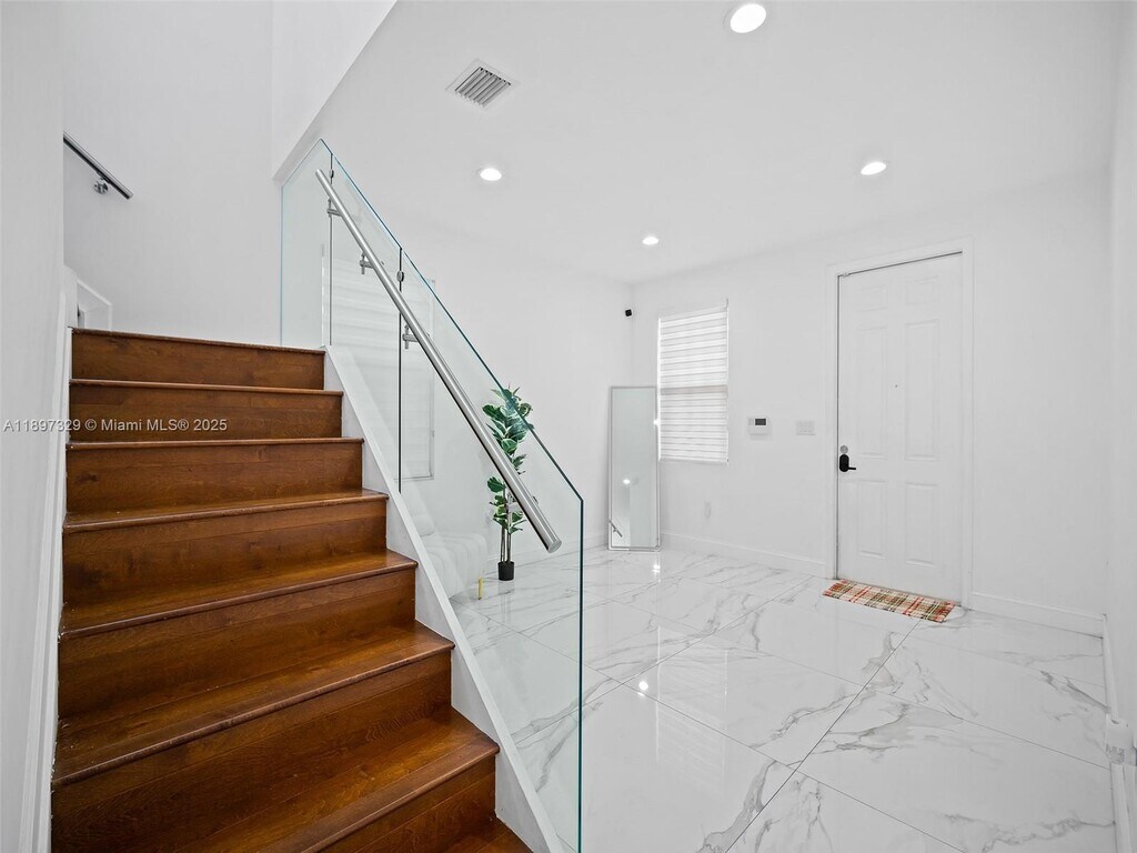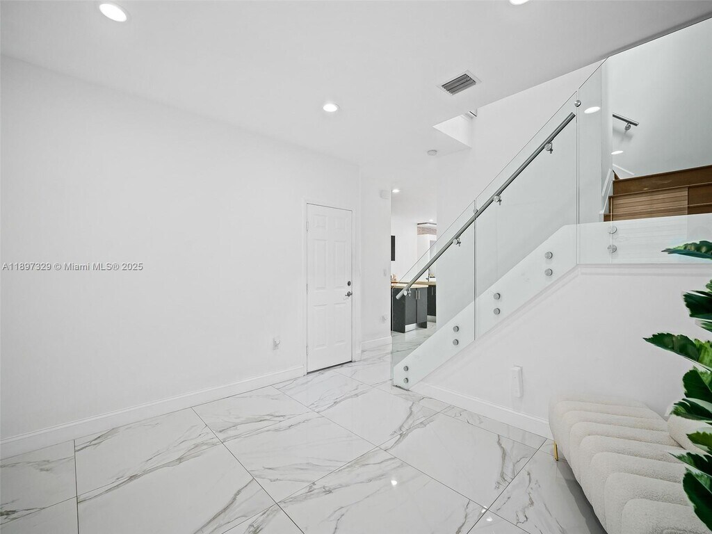This beautifully updated home features stunning downstairs flooring, a remodeled open-concept kitchen, living, and dining area, plus a custom built-in TV wall with an electric fireplace. Enjoy modern touches throughout, including zebra shades, remodeled closets, and a stylish half-bathroom. The home also offers a large pantry and new washer & dryer for convenience. Upstairs, glass railings add a sleek, contemporary feel. Step outside to your private oasis with a newly installed pergola, built-in BBQ, fridge, and granite countertop — perfect for entertaining! Located in a desirable, quiet community near top schools, parks, shopping, dining, and minutes from Downtown Doral & City Place. Truly move-in ready with every detail upgraded for style and comfort!