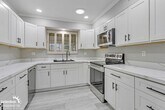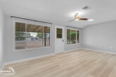 Beautiful 3Bdm 2Ba Home in Suncity! Spacious family home featuring light wood flooring, neutral tones, and abundant natural light throughout. The open-concept layout flows seamlessly from the bright living area to a modern kitchen with white cabinetry, sleek countertops, stainless steel appliances, and a built-in wine rack. Well-appointed bedrooms offer plush carpeting, ample storage, and ceiling fans for year-round comfort. The stylish bathroom showcases marble-style tile, a quartz vanity, and premium finishes. Enjoy outdoor living in the serene backyard with a covered patio and mature Palo Verde trees. Includes a two-car garage.Tenant pays all utilities. Pets with approval via process. This property allows self guided viewing without an appointment. Contact for details.