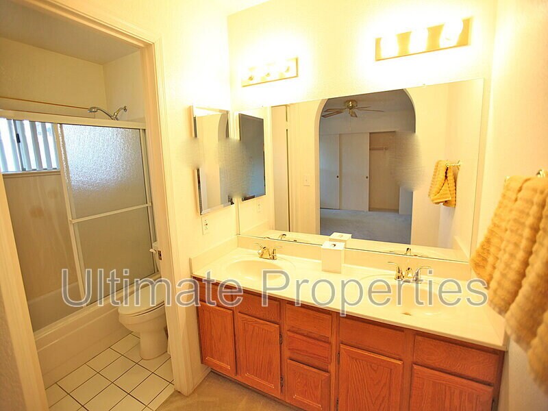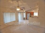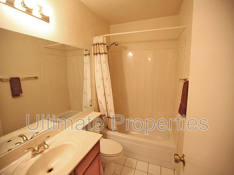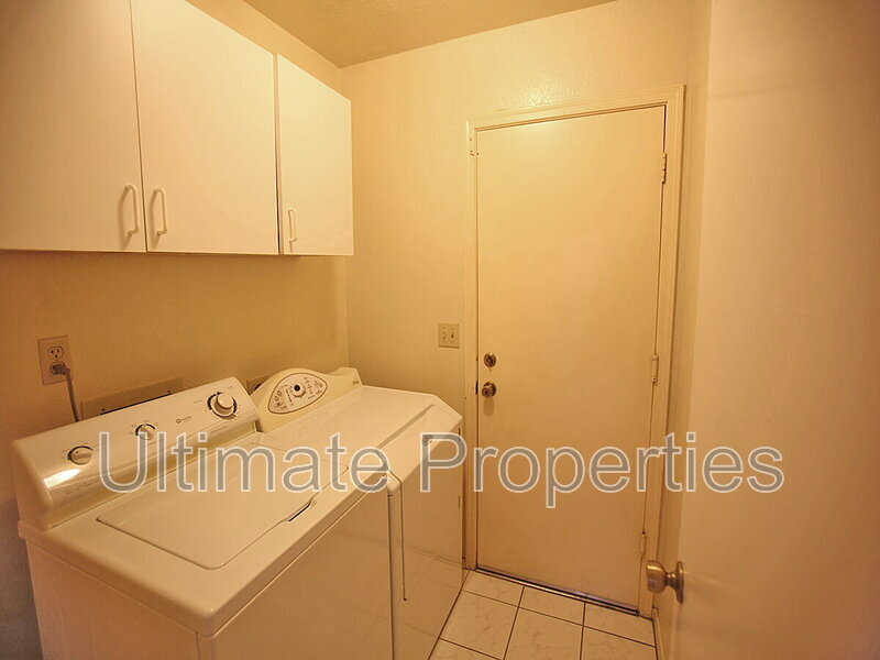 Tour this inviting 3-bedroom, 2-bathroom home with all appliances included! The spacious living area features vaulted ceilings that create an open, airy feel. The kitchen comes equipped with a refrigerator, dishwasher, microwave, and stove, plus a washer and dryer for added convenience. The master suite includes dual closets and an ensuite bathroom with dual vanity sinks. Relax and entertain on the extended covered patio in the backyard. Schools close by. Don't miss this opportunity—schedule your showing today!