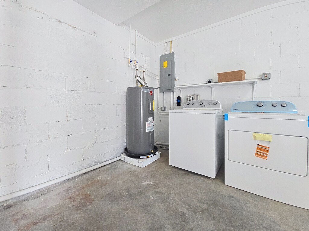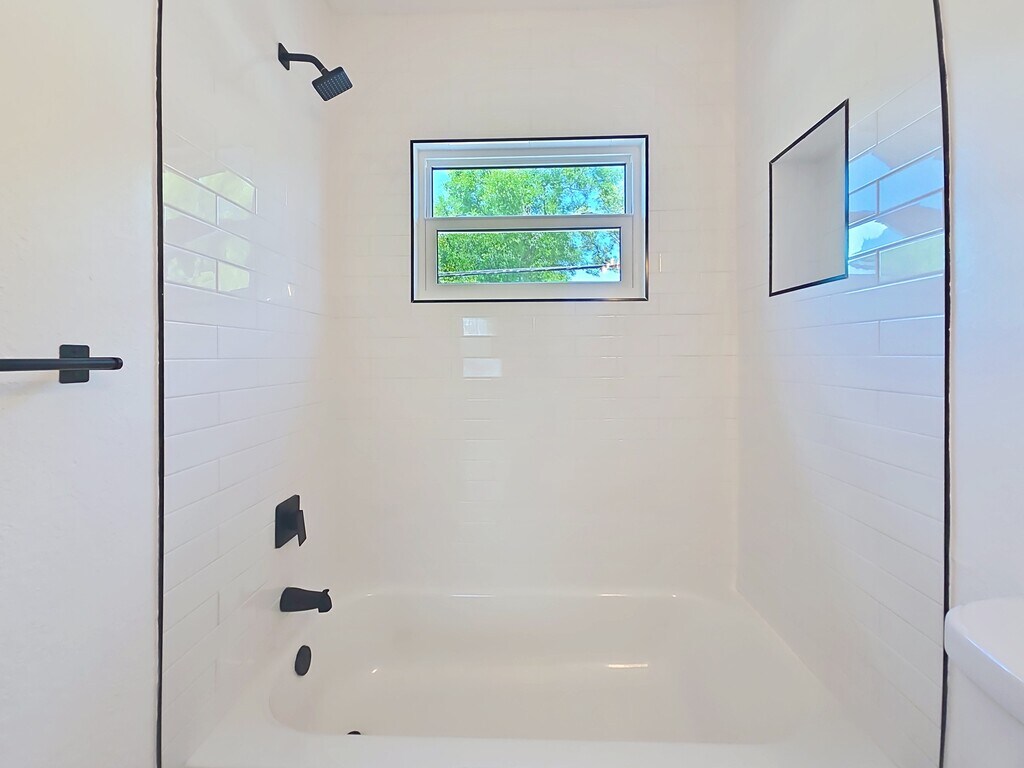 Fully renovated 1 bedroom, 1 bathroom apartment available for rent. This unit is located above a detached garage and is accessed via exterior stairs. The apartment features a private balcony, providing an outdoor space for seating and relaxation. A shared laundry area with washer and dryer is located downstairs for tenant use. There is also a separate single-family home located at the front of the property, currently available for rent, offering 2 bedrooms and 1 bathroom. Both units may be rented together, subject to availability.