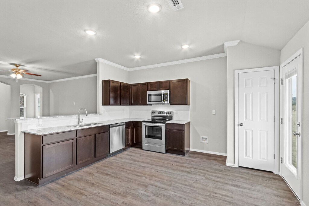 Gorgeous new construction located in Elkins! This home has 4 bedrooms, 2 bathrooms, 2 car garage, and and open concept kitchen with an eat in area that opens up into living room space. Spacious bedrooms that are carpeted and then beautiful vinyl throughout. Covered patio area off the kitchen and a large backyard space. This home is a must see is a must see! IMPORTANT THINGS TO KNOW - Application Fee: $50 per applicant 18 or older (Application processing time is 1-3 business days.) - Resident Benefit Package: $25 per month - Move in Admin fee: $200 - Security Deposit: Starting at equal to one month rent | based on credit - Security Deposit is due 24 hours upon approval We are a pet friendly property, and we welcome responsible pet owners (cats & small dogs only)! As part of our application process, all applicants with pets are required to complete a PetScreening profile. This is a mandatory step to ensure that pets meet the property’s guidelines and help maintain a safe and comfortable environment for all residents. A non-refundable fee of $25 (via ACH) or $30 (via credit card) is required by Pet Screening to process a pet profile. Profiles for service animals and "No Pet" declarations are free of charge. The pet fee is $250 Your pet rent will be determined based on your pet's Fido Score, which is a rating derived from the information provided during the screening process. The higher the Fido Score, the lower the pet rent may be, depending on the pet's behavior, history, and other factors. "1" paw score: $80 "2" paw score: $60 "3" paw score: $50 "4" paw score: $40 "5" paw score: $30