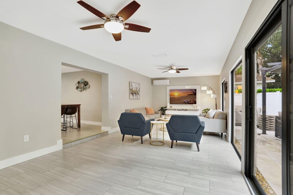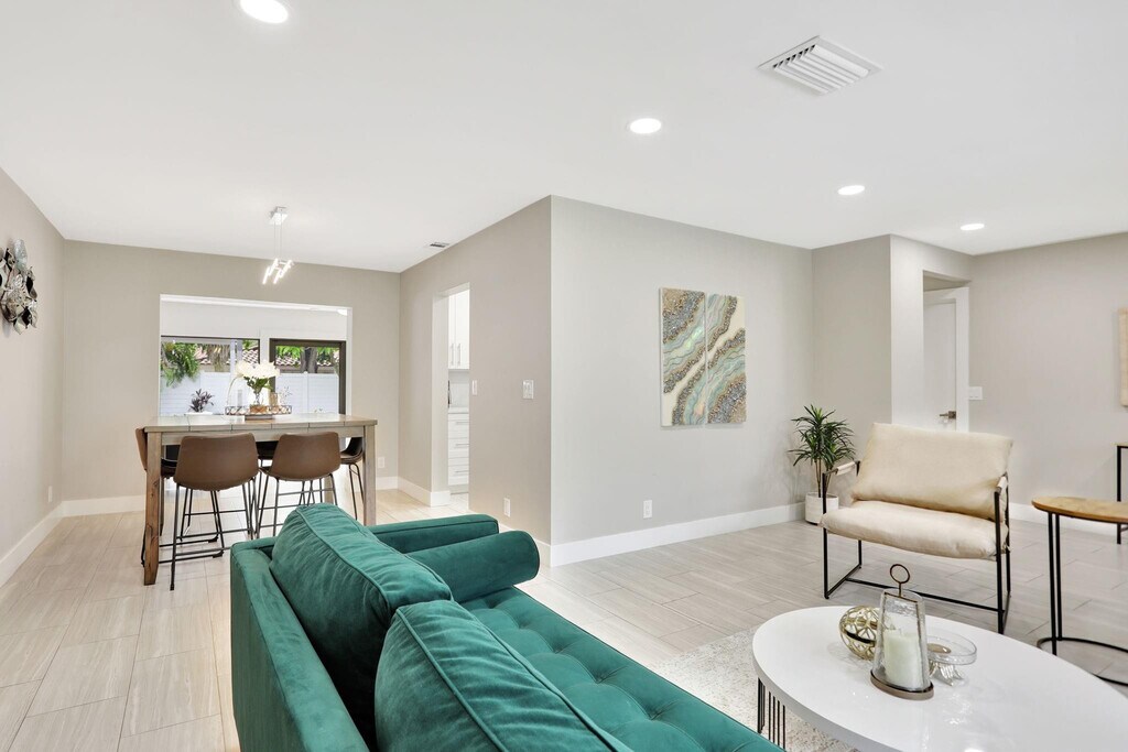 Rented out until May 31st 2026. Welcome to your own tropical slice of paradise,location is everything w this beautiful East Boca Raton home. Gorgeous 4/2-2 car gar,circular driveway,fully renovated has both living room & family room/oversized impact glass enclosed Florida room offering tons of extra living space plus formal dining room. fully fenced yard,perfect for your fur babies & kids to play. This rental can be yours furnished or unfurnished w very tasteful & modern furnishings; Hop skip and jump to the beach,ride your bike to Mizner,tons of anchored plazas and shops to choose from! Don't miss out! Book it for next year off season. Available June 1st. Also available for season 2027. MLS ID F10498992