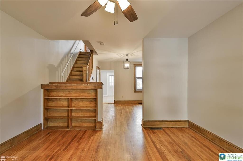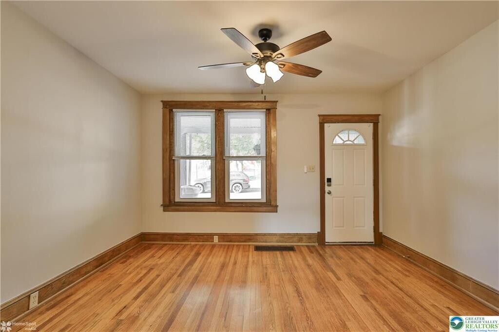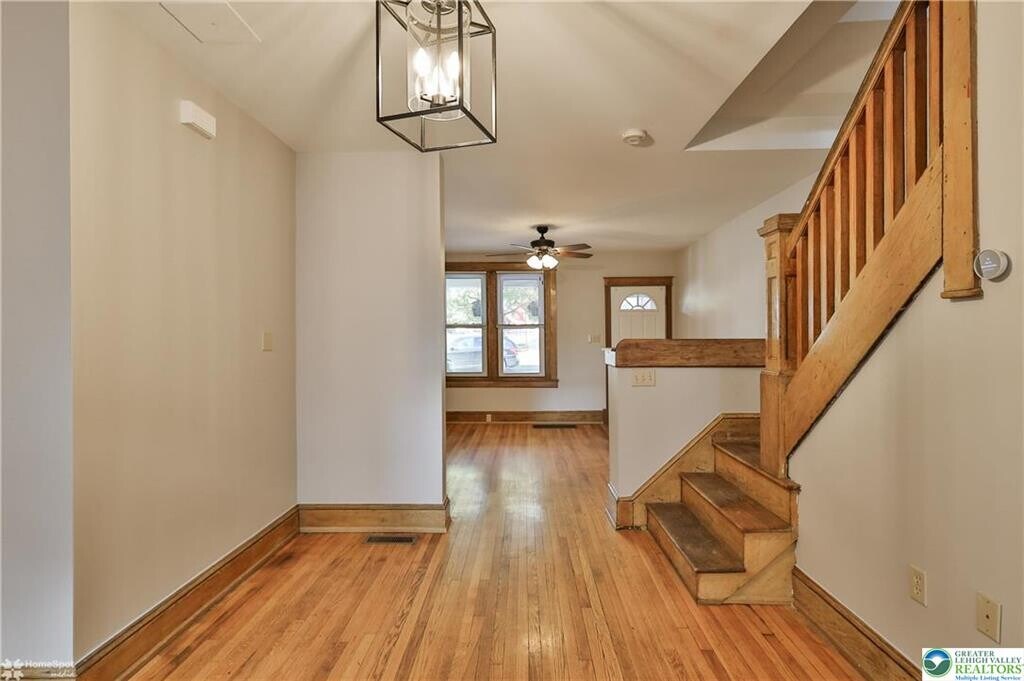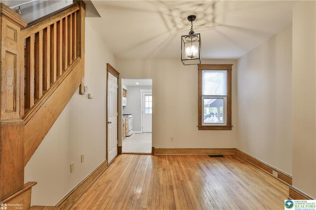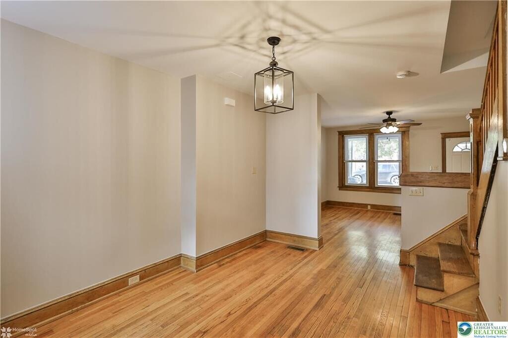 For rent! An ideal location for almost all the amenities, hospitals, schools and universities within the city of Bethlehem. In the heart of west bethlehem you will be greeted by a large covered front porch, gleaming hardwood floors and original woodwork. The bright, modern kitchen offers a gas range and refrigerator remains for the tenant. Upstairs you will find 2 well sized bedrooms, a bonus office/flex room and updated full bath. This is the perfect package with economical gas heat, central air, and washer dryer on site. Minutes to downtown Bethlehem. Owner is looking for: Excellent credit scores, background check, proof of income 2.5X the rent, job history, landlord reference, min 1 year lease. small dogs under 40 pounds considered with pet fee.