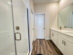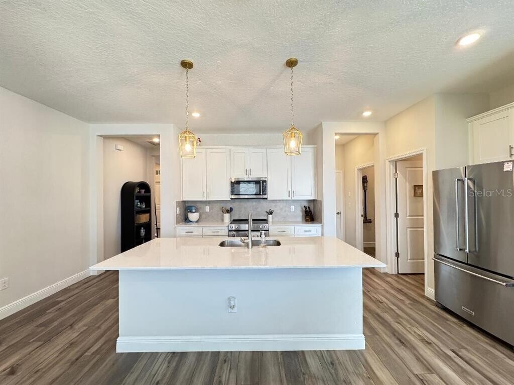 Welcome to this beautifully designed 2024-built single-story home located in the highly sought-after Mirada Lagoon community in San Antonio,FL. This elegant 3-bedroom,2-bath residence with a 2-car garage and fully fenced backyard offers both comfort and modern style. Step through the front door into a wide,welcoming foyer where two well-sized guest bedrooms are conveniently located to the right,separated by a full bathroom—perfect for family or guests. The foyer opens into a spacious main living area featuring luxury vinyl plank flooring throughout the common spaces,creating a seamless and upscale feel. The open-concept kitchen is a true centerpiece,boasting 42-inch upper cabinets,sleek quartz countertops,and stainless steel appliances,including a dishwasher,French-door refrigerator,and microwave. The kitchen flows effortlessly into the living and dining areas,making it ideal for entertaining. Sliding glass doors lead to a covered patio,perfect for relaxing or enjoying outdoor living. Privately situated at the rear of the home,the spacious owner’s suite offers a peaceful retreat. The en-suite bathroom features a double vanity,a walk-in shower with floor-to-ceiling tile,and a large walk-in closet for ample storage. Additional features include a smart voice-controlled thermostat for modern convenience. Enjoy resort-style living with access to the incredible Mirada Lagoon,along with ultra-fast WiFi included in the rent. Conveniently located just minutes from shopping,dining,and entertainment,with Tampa only about a 40-minute drive away. Small pets are welcome (no aggressive breeds),with a pet fee required. MLS# TB8493369