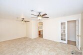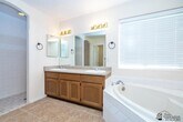 Villa Chaparral 3 bedroom, 2 bathroom house for rent, available immediately. Tile, ceiling fans, and blinds throughout. Open and split floorplan with elevated ceilings in great room. French doors to backyard from living room and from extra large primary bedroom. Primary bathroom has separate shower and garden bathtub with walk-in closet and water closet. All landscaping is hardscape for very low maintenance. Refrigerator, washing machine, and dryer included as a courtesy. Attached automatic 2 car garage. Pets on approval. Call now! MLS ID 20261870