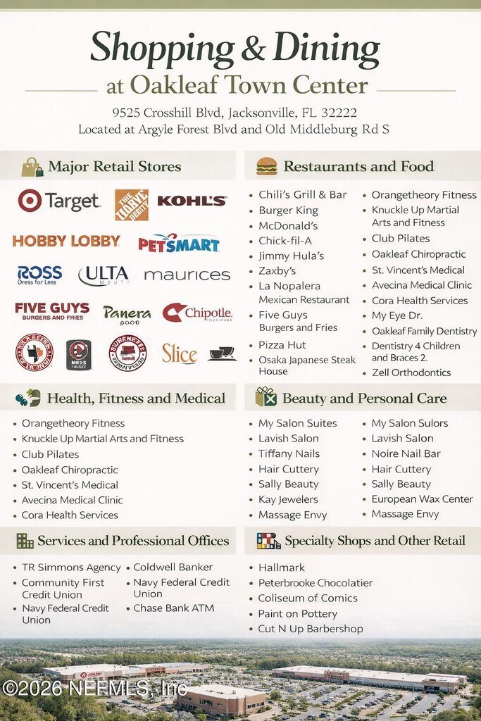 Welcome to Longleaf! Beautiful master-planned community in Oakleaf! This spacious 2 bedroom,3.5 bathroom townhouse offers a comfortable layout with large bedrooms and private bathrooms,giving everyone their own space and privacy. The home sits just outside Argyle Town Center,placing you minutes from shopping,restaurants,grocery stores,and everyday conveniences. Residents enjoy community amenities including a pool and playground,perfect for relaxing or enjoying time outdoors. The location offers quick access to major roadways and an easy commute to Naval Air Station Jacksonville,making it a great option for military members stationed at NAS Jax who want to live close to base while still enjoying nearby shopping,dining,and neighborhood comforts. Whether you work nearby,are relocating to Jacksonville,or simply want to live in a convenient and well-located community,this home offers the space,location,and lifestyle. Additional Lease Terms: 12 Months @ $1900 Security Deposit: $1900 total to move in $3800 Application Fee: 49; Owner Pays: Association Fees Tenant Pays: All Utilities Pets Allowed: No Special Listing Conditions: Smoking Prohibited MLS# 2133880