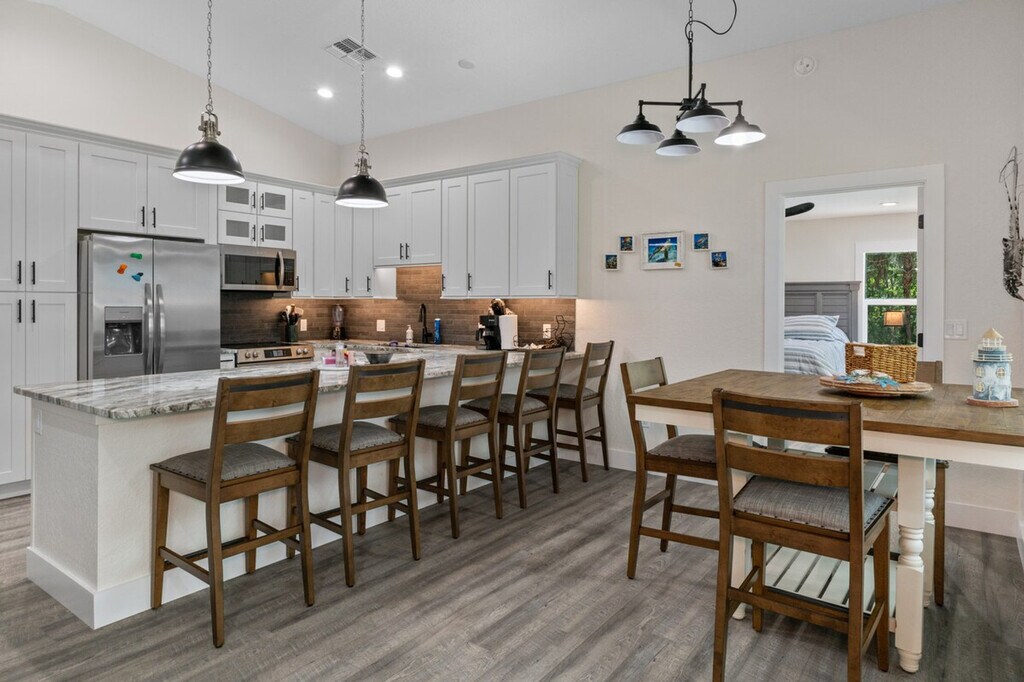 The advertised rate of $5,156/month is the lowest available price, based on a 1 month(s) stay with a move-in date of September 22, 2026. Rates vary depending on the duration of stay, season, and other parameters. For exact pricing and additional pricing components, please visit our website and enter your desired move-in and move-out dates. The rate is applicable when billed upfront; it can be higher if billed in multiple payments. Feel at home in this stunning, brand new 3-bedroom villa with a view of the Homosassa River. As you walk up the stairs, you'll reach the very large porch of this house, located in a quiet part of the community. The well-equipped kitchen makes it easy to prepare meals. The master bedroom features a king-size bed and a spacious shower in the master bathroom. The second and third bedrooms also have king-size beds and share a bathroom with a shower/tub combination. All bedrooms have a TV. For outdoor enjoyment, there is a gas BBQ and free Wi-Fi is available. In the garage, you will find two kayaks, a paddle board, and bikes for your use. Docks are available for rent for boats up to 26 ft. The large driveway and the room underneath the house make it easy to park your car(s) and trailer(s). The community has a nice swimming pool with a large pool deck and lounge chairs. The marina has direct access to the Gulf of Mexico for fishing, dolphin watching, scalloping, and swimming. In the winter, visit the manatees at the Homosassa Springs. [SI]