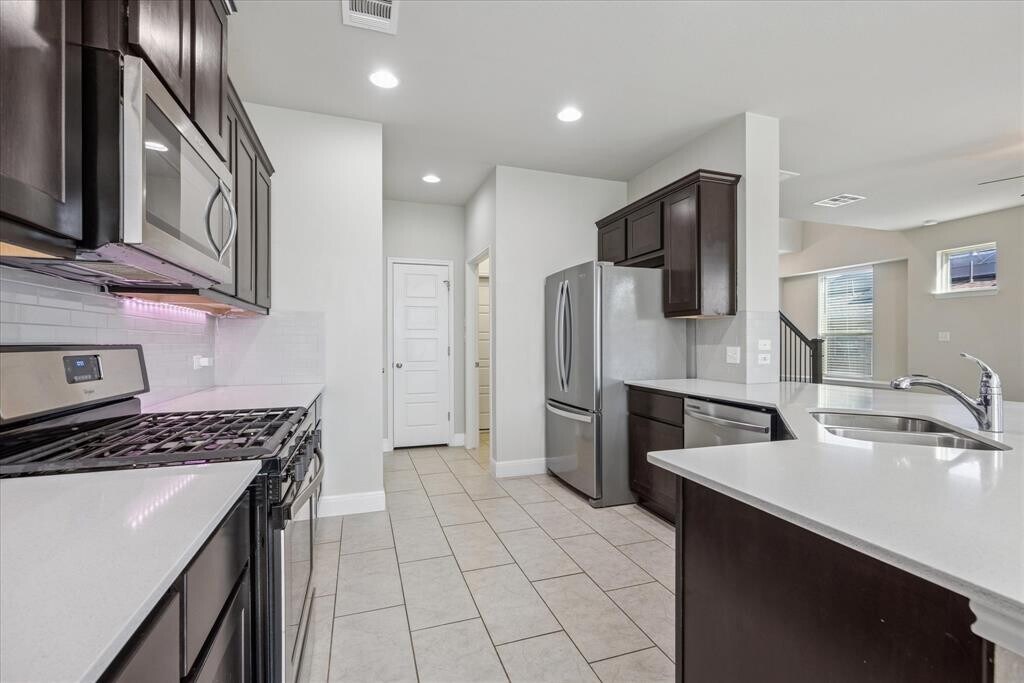 An immaculate gem in Madsen Ranch with a custom backyard oasis paradise.(no neighbor in the backside lot) Large 3 bed 2.5 bath Buffington builder home with all the modern upgrades and finishes that include quartz peninsula kitchen island, stainless steel appliances, that opens up to the main family room to entertain friends and family. The large upstairs owner's retreat features a walk-in closet with an en suite bathroom featuring a double vanity with Corian countertops, euro shower with bench, and upgraded garden tub for a truly spa-like experience. The owner has put efforts to extend the patio slab with a fire pit, for entertaining with electrical outlets to run string lighting, and set the mood for any occasion. Come take a look today to see more features such as adjustable LED under cabinet lighting, pet door access, modern ceiling fans, too many to list. The neighborhood is within walking distance of Old Settler's Park and bike paths. The location is situated near I-35 and the 130 Tollway, plus minutes from shopping, dining, and entertainment.