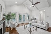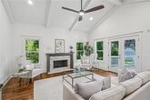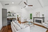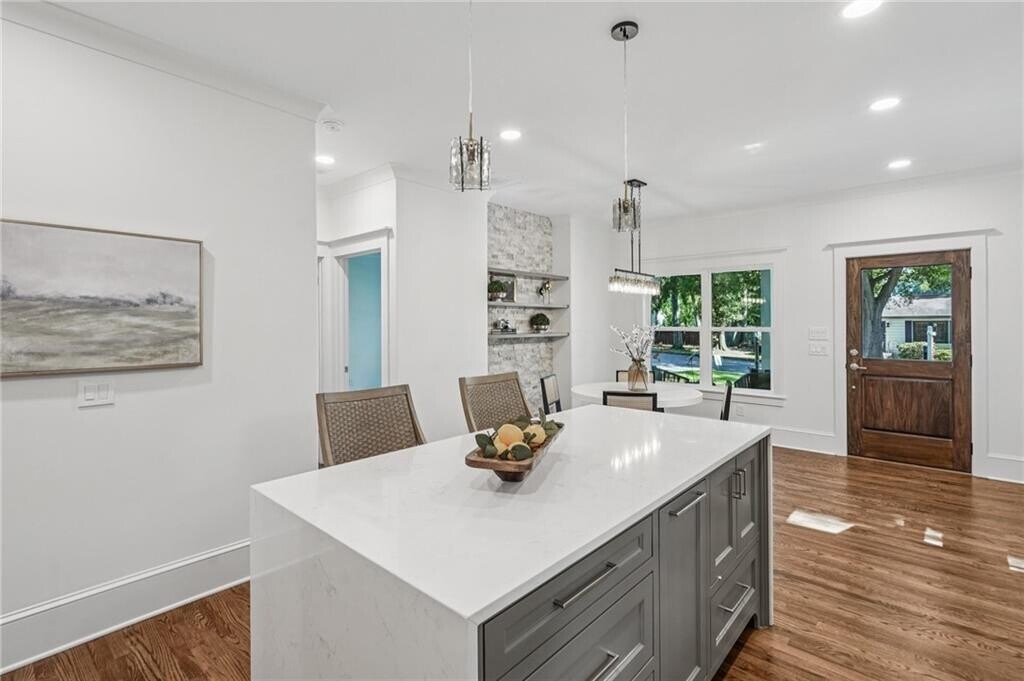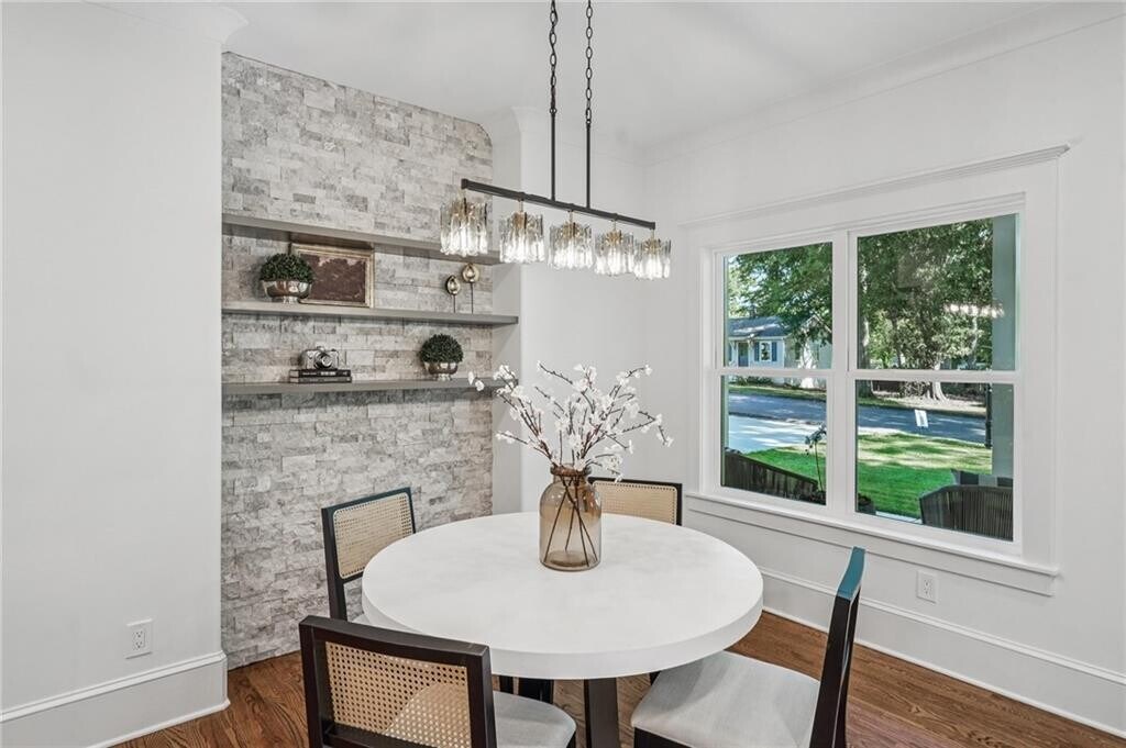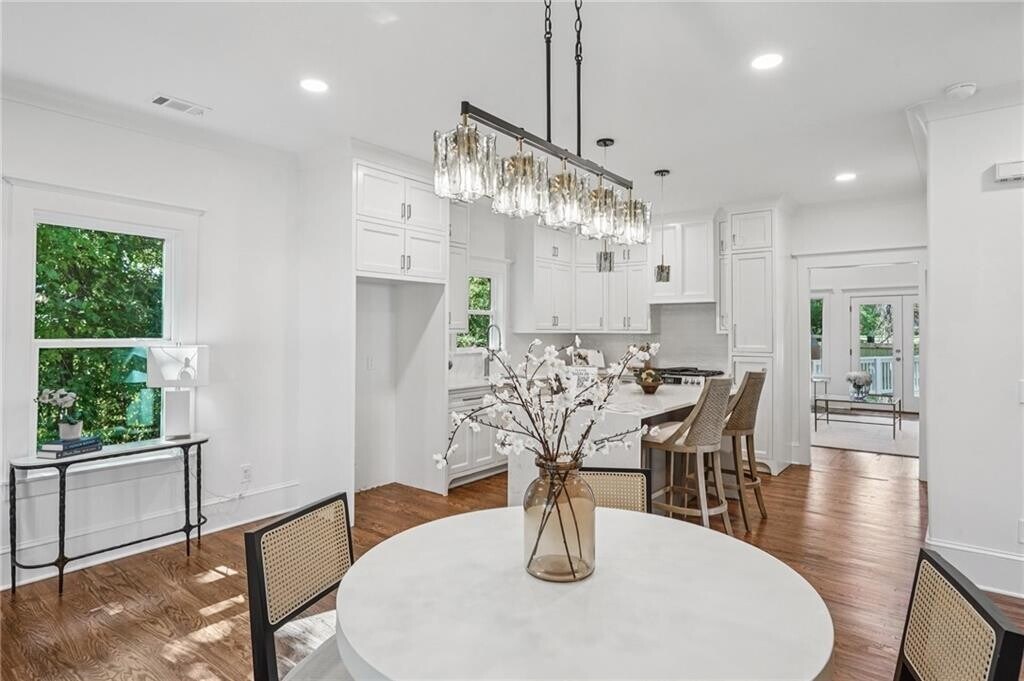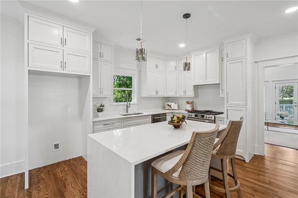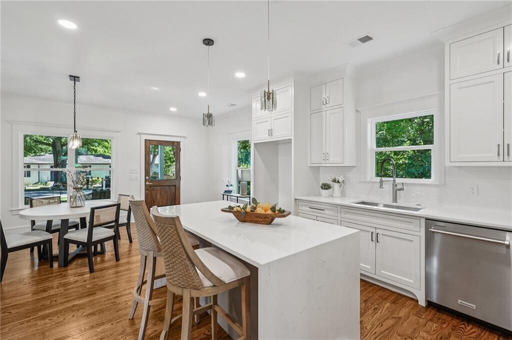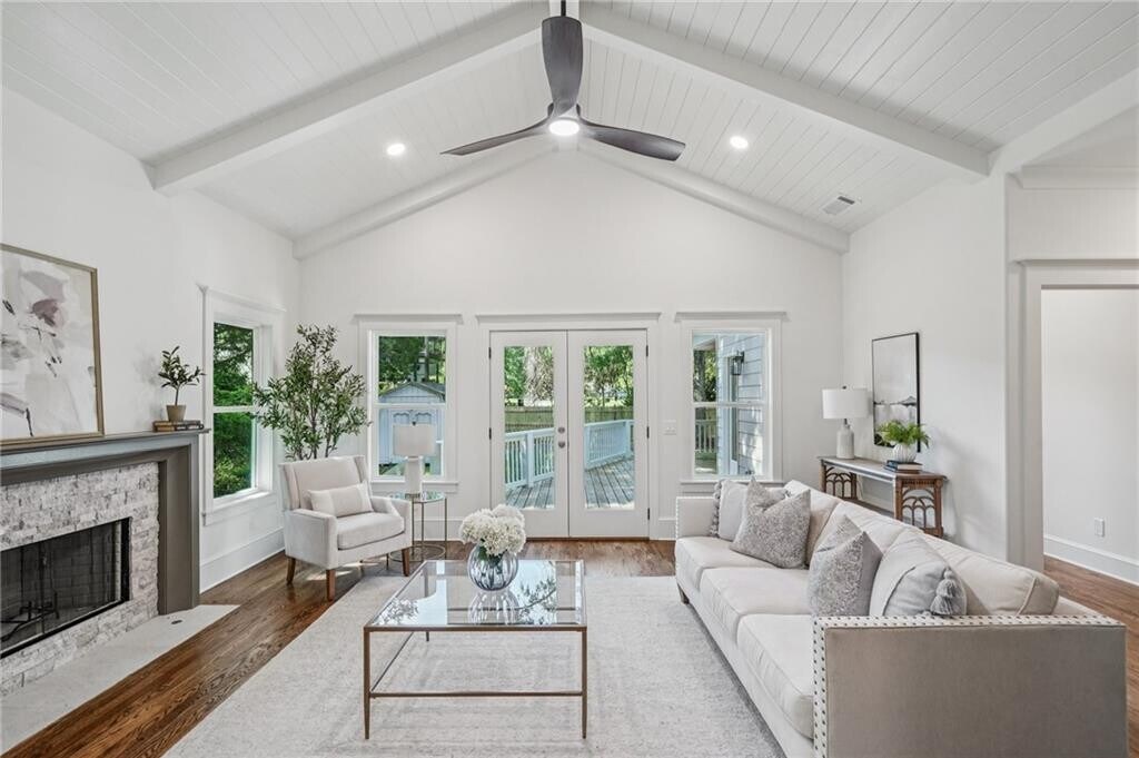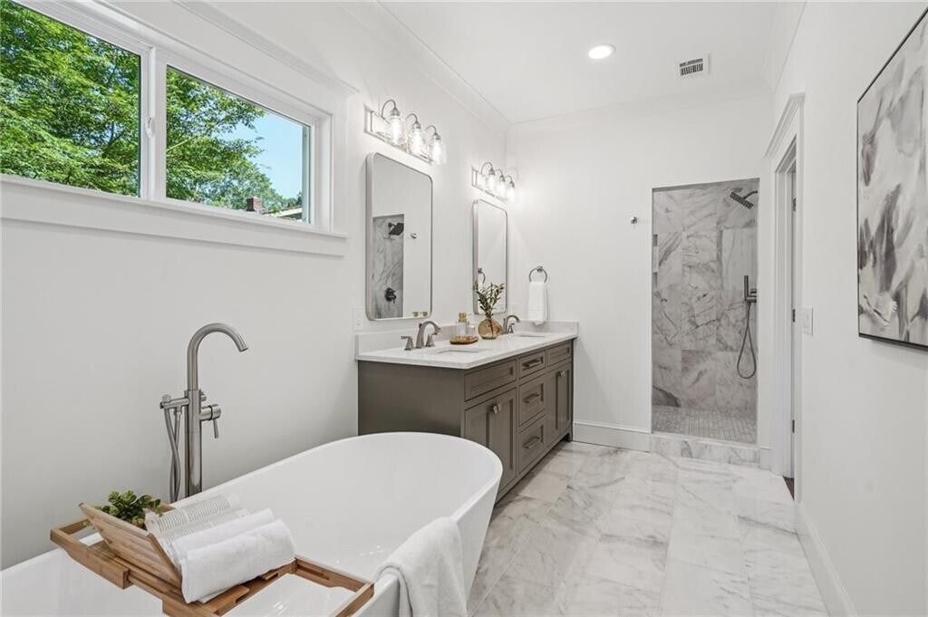This stunning 1951 Craftsman-style residence has been meticulously renovated by Rutledge Design Group and Ridgecrest Ventures,offering a perfect blend of classic charm and modern luxury. Step onto the expansive covered front porch and enter a light-filled interior featuring hardwood floors throughout. The gourmet kitchen boasts custom cabinets,a quartz waterfall island,and seamlessly flows into the family room with beamed ceilings and a built-in bar,ideal for entertaining. The oversized master suite is a true retreat,complete with dual vanities,a freestanding soaking tub,a tile shower,and a spacious walk-in closet. Additional highlights include a versatile mudroom/laundry combo,three well-appointed bedrooms,and a beautifully landscaped,fenced backyard with a shed. Enjoy 385 sq ft of outdoor living space and the convenience of being just a short stroll from downtown Smyrna's vibrant shops,restaurants,and parks. This home is a rare gem! Schedule your private tour today! $43 application fee per person. No smoking allowed. Pets allowed subject to approval and $500 non-refundable pet fee.