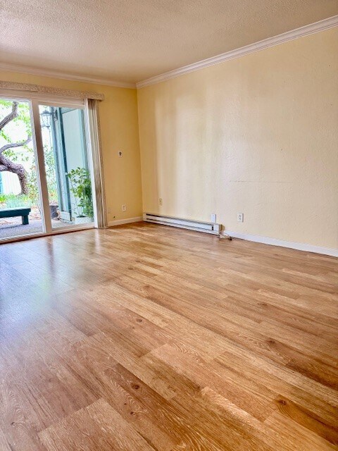 Lovely Concord gated garden community, Great location near Treat Blvd, Trader Joe's and Peet's. Our 671 Sq Ft Downstairs One bedroom/One bath spacious condo is nestled in a tree covered setting. This condo is move in ready. * Downstairs condo steps from the covered parking space * Large bedroom-Lots of windows with pulldown blackout shades * Kitchen-neutral wood cabinets, black appliances, and Granite countertops * Lots of closet space-interior & large storage closet on patio * Living room had built in media center and bookshelves * New vertical blinds in living room and dining room * Lovely laminate flooring throughout-no carpeting * Bath-Separate Vanity/ Sink from Shower/Tub * Baseboard heating and wall A/C * Sparking community pool * Three on-site Laundry Rooms * Gorgeous waterways and manicured grounds * One reserved covered parking space-additional uncovered parking available * Water and Trash included with rent Astound Real Estate and Property Management, a professional property management company, CalBRE #01467064. One year lease. Reach out to Astound Property Management for tours. This is a smoke free. One cat may be considered. This condo is move in ready.