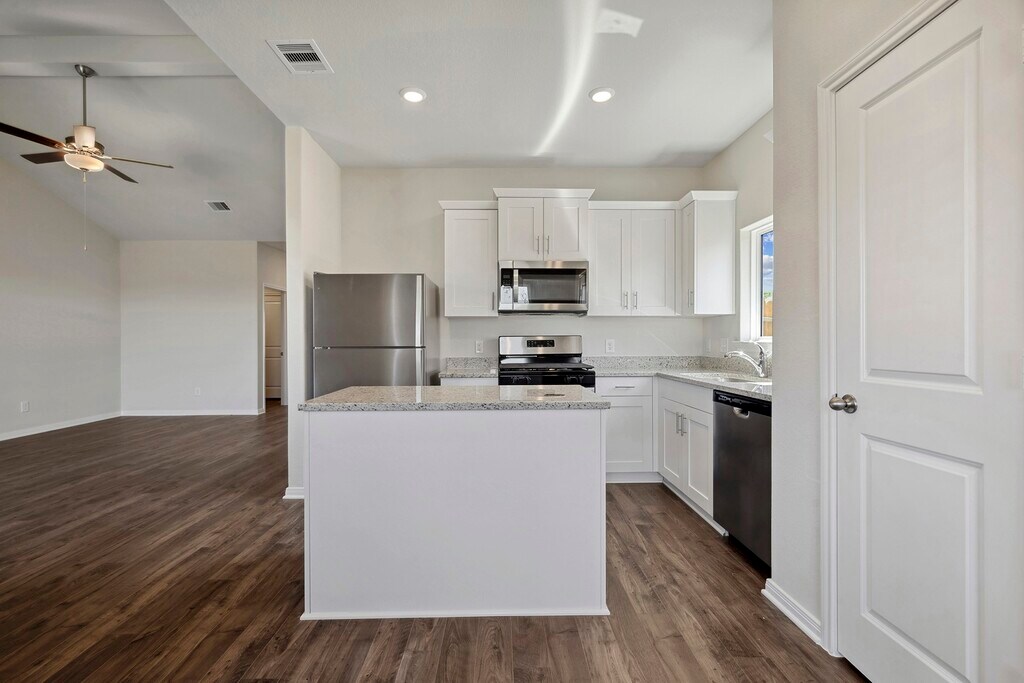 Welcome to the Sabine floor plan,this inviting single-story home with NO BACK NEIGHBORS offers 3 bedrooms,2 bathrooms,1,601 sq ft and a 2-car garage with a layout designed to fit your lifestyle. The spacious family room sits at the heart of the home and features vaulted ceilings that create an open,airy feel. Just off the main living area,a flex room with elegant French doors offers the perfect space for a home office,playroom or hobby area. The open kitchen is both stylish and functional with granite countertops,a large island,Whirlpool® appliances and a bright dining area ideal for everyday meals or entertaining. The private primary suite provides a relaxing retreat with ample space and comfort. Enjoy beautiful flooring,abundant storage,and a covered porch and patio. Don't forget to enjoy the splash pads,playgrounds,walking trails,green space,picnic areas,BBQ spots,a pond and fiber internet access—making this home as enjoyable outside as it is inside. MLS# 4473721