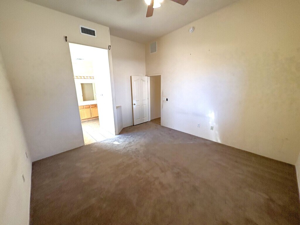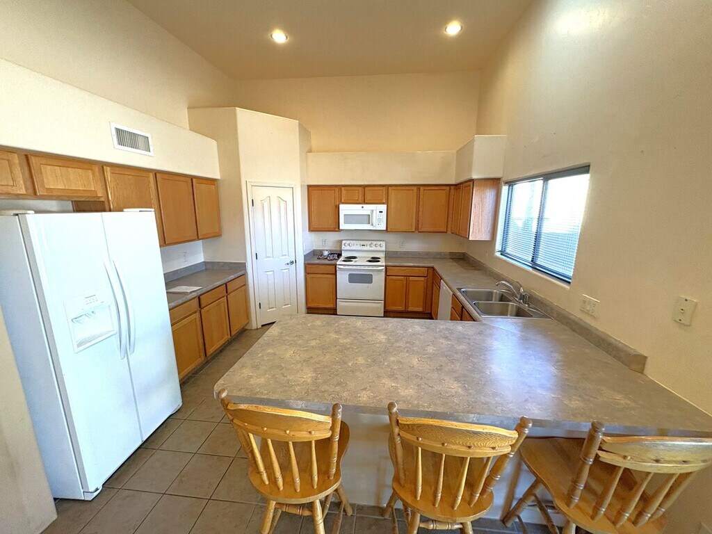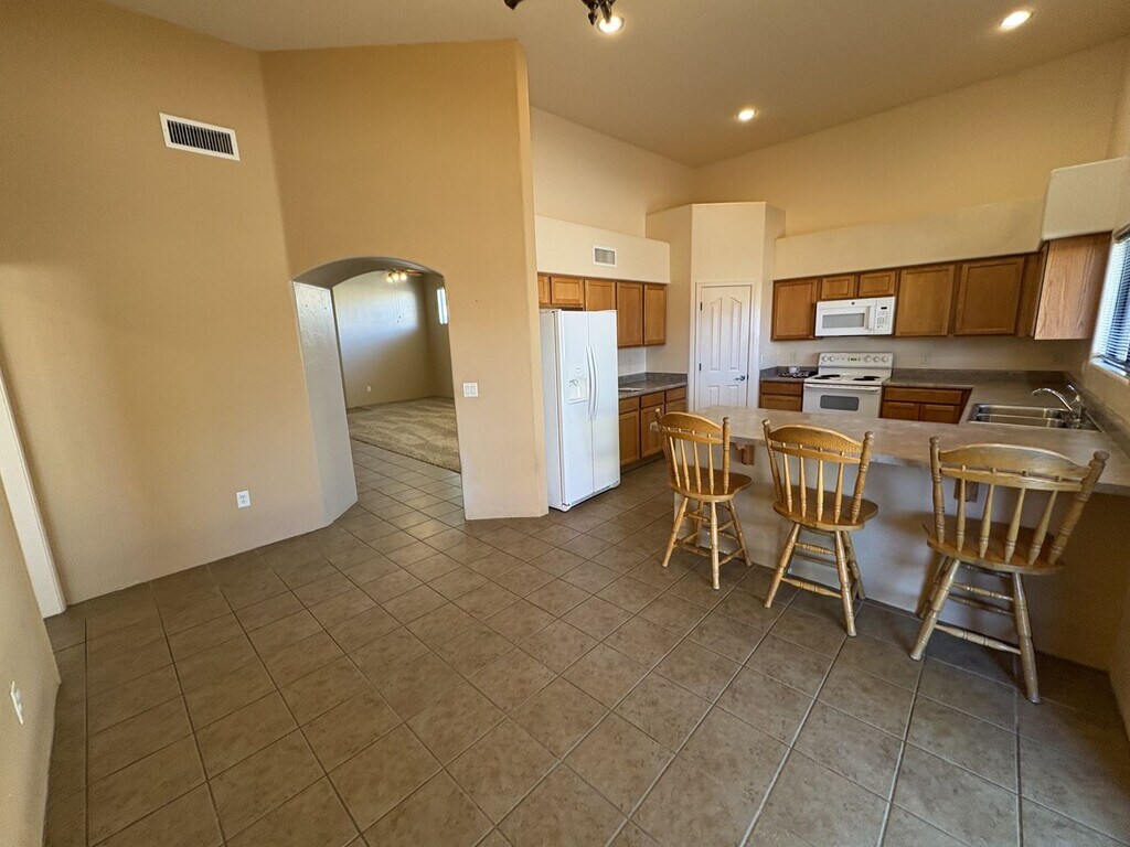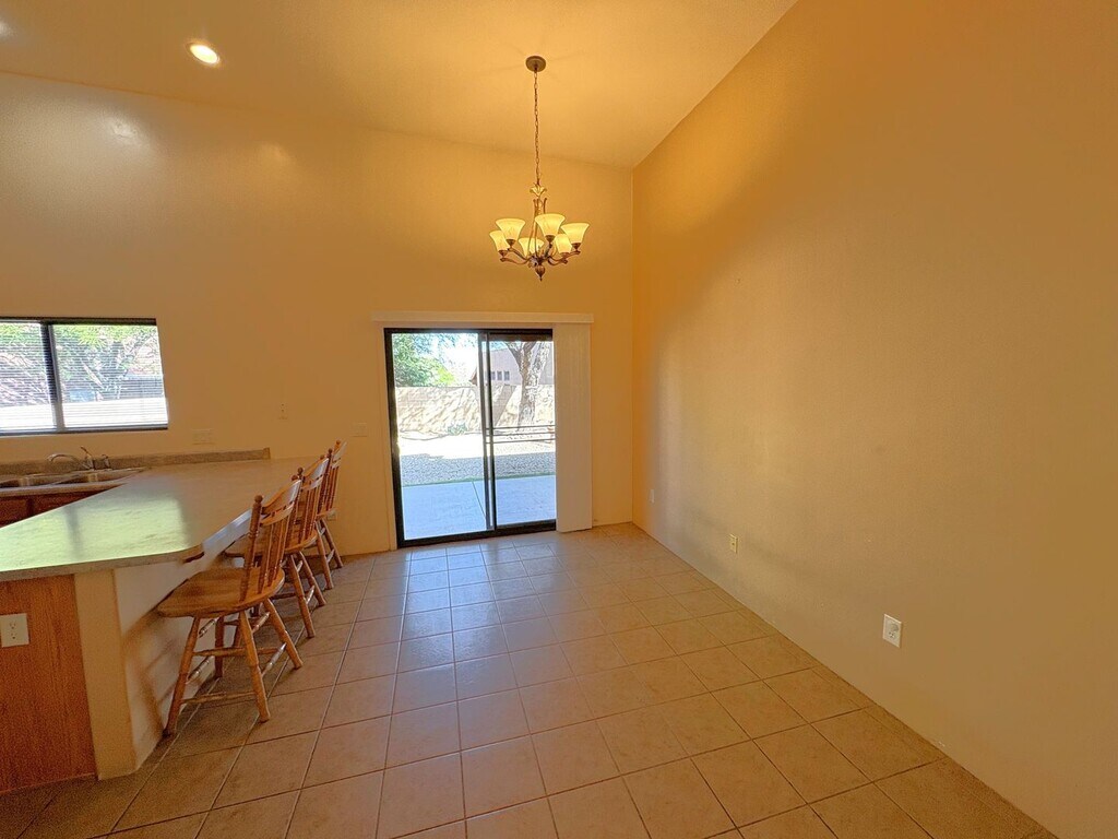 Welcome to this four-bedroom, two-bathroom home located in the desirable eastside of Tucson, AZ. This property boasts a north/south orientation, providing optimal natural light throughout the day. The split bedroom floorplan offers privacy and convenience, while the 14-foot ceilings throughout the home create a spacious and airy atmosphere. The master suite is a true retreat, featuring a separate garden bath, walk-in shower, and a large walk-in closet. The kitchen is a chef's dream, complete with all appliances, a formal dining area, an eat-in kitchen area, and a breakfast bar for casual dining. The home is situated on a large lot at the end of a cul-de-sac, providing ample outdoor space to enjoy the covered patio. Ceiling fans are installed in bedrooms for added comfort. This pet-friendly home is ready to welcome you and your furry friends. Experience the perfect blend of comfort and convenience in this remarkable Tucson home.