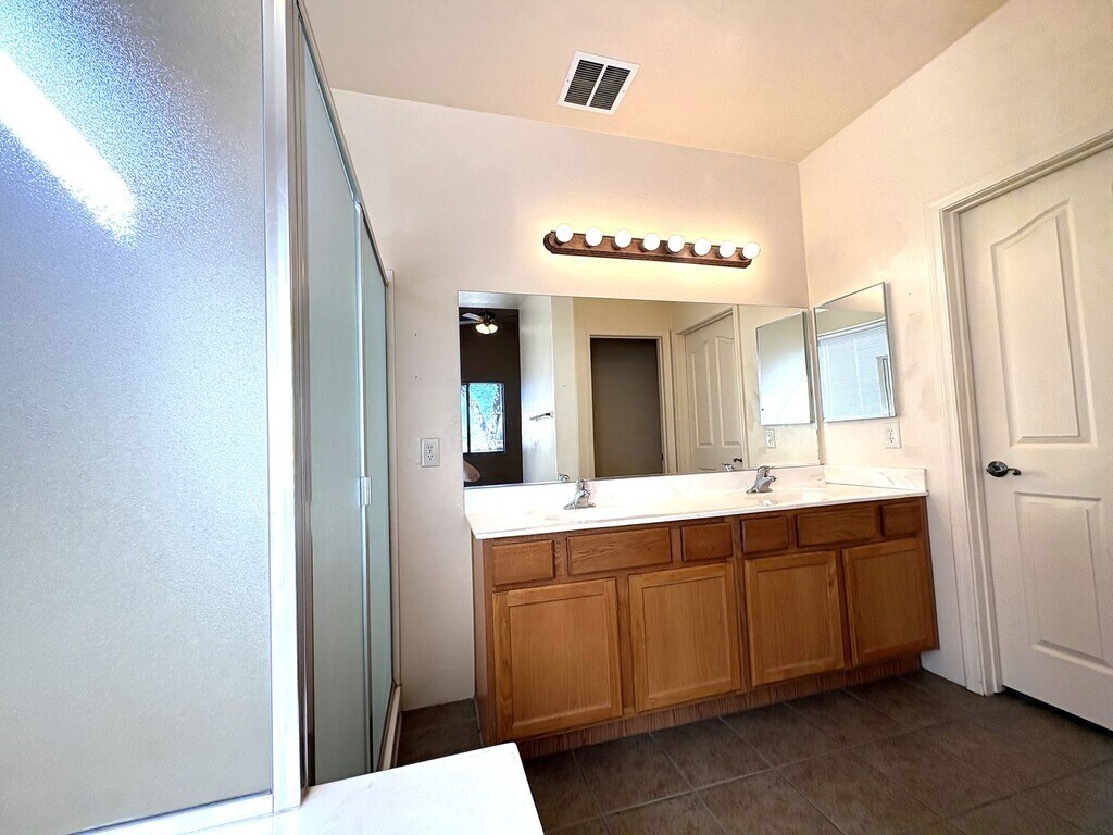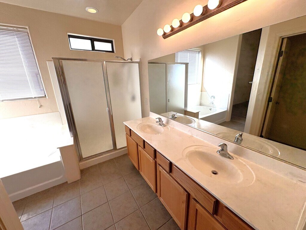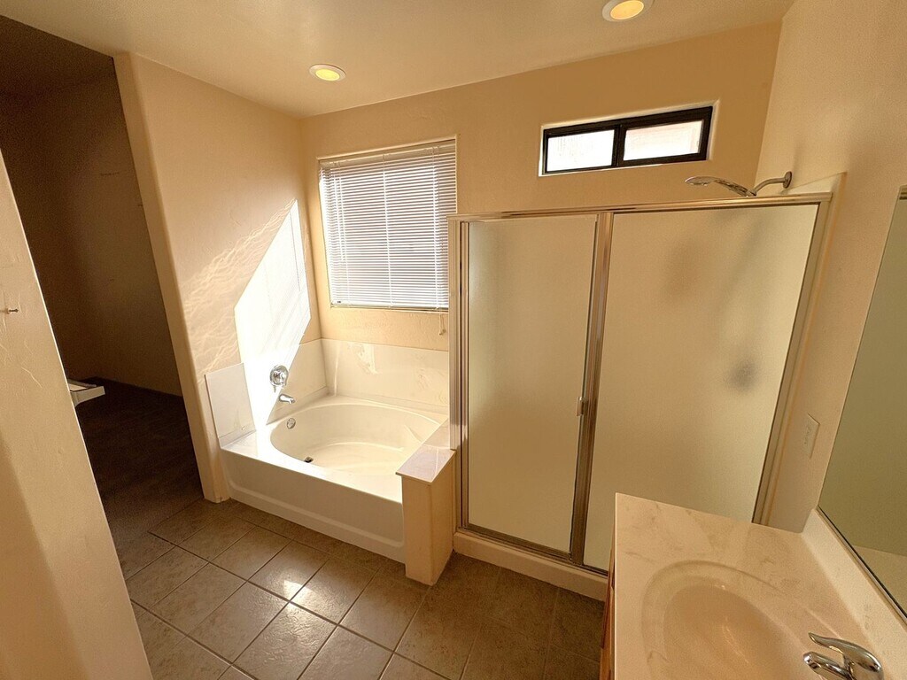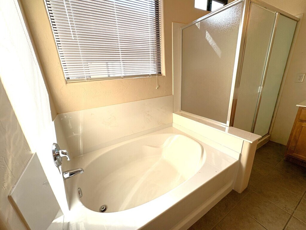 Welcome to this four-bedroom, two-bathroom home located in the desirable eastside of Tucson, AZ. This property boasts a north/south orientation, providing optimal natural light throughout the day. The split bedroom floorplan offers privacy and convenience, while the 14-foot ceilings throughout the home create a spacious and airy atmosphere. The master suite is a true retreat, featuring a separate garden bath, walk-in shower, and a large walk-in closet. The kitchen is a chef's dream, complete with all appliances, a formal dining area, an eat-in kitchen area, and a breakfast bar for casual dining. The home is situated on a large lot at the end of a cul-de-sac, providing ample outdoor space to enjoy the covered patio. Ceiling fans are installed in bedrooms for added comfort. This pet-friendly home is ready to welcome you and your furry friends. Experience the perfect blend of comfort and convenience in this remarkable Tucson home.