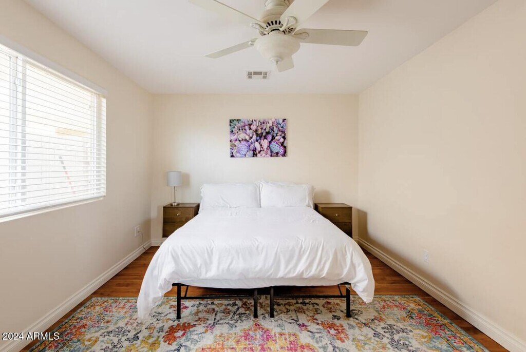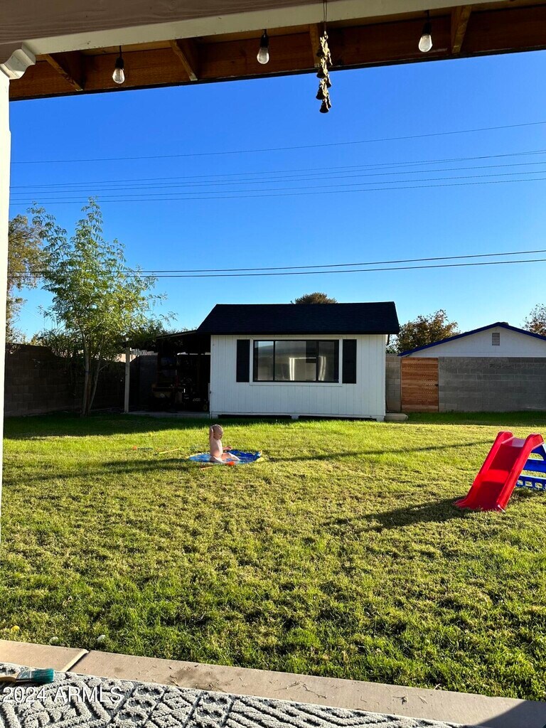 Experience the perfect combination of location,charm,and modern upgrades at this newly renovated 4-bed,2-bath home near Mesa Riverview and the Cubs Stadium. Enter through the formal living room into the spacious great room featuring a large kitchen with ample cabinetry,counter space,and a bar-height peninsula. Enjoy meals in the separate dining area or relax in the family room that leads to a large backyard with a bonus office/shop building. The master suite boasts a remodeled en suite with a stunning floor-to-ceiling tiled shower. Energy-efficient upgrades such as brand-new windows have been installed for added comfort. With engineered hardwood floors,tile in the kitchen and bathrooms,and a large storage room/laundry room,this home has it all. There is also a fully remodeled workshop that we use as an office with high speed internet and a mini split new LVP floors. It is about 200 sqft. Big bonus for someone that has work from home needs. Huge back yard with grass. Convenient access to highways 101 and 202,excellent schools,and a desirable neighborhood complete this unbeatable rental opportunity. No smoking,no pets. Rent includes a 12-month lease,with utilities paid by the tenant.