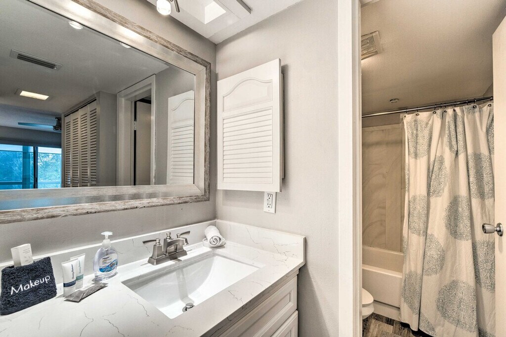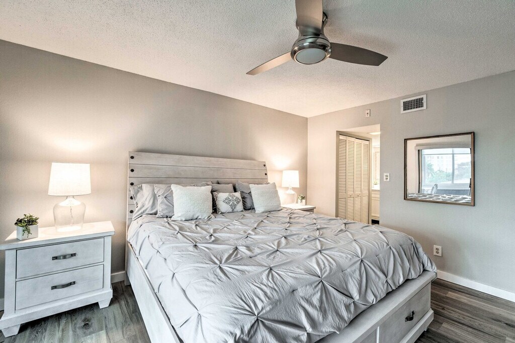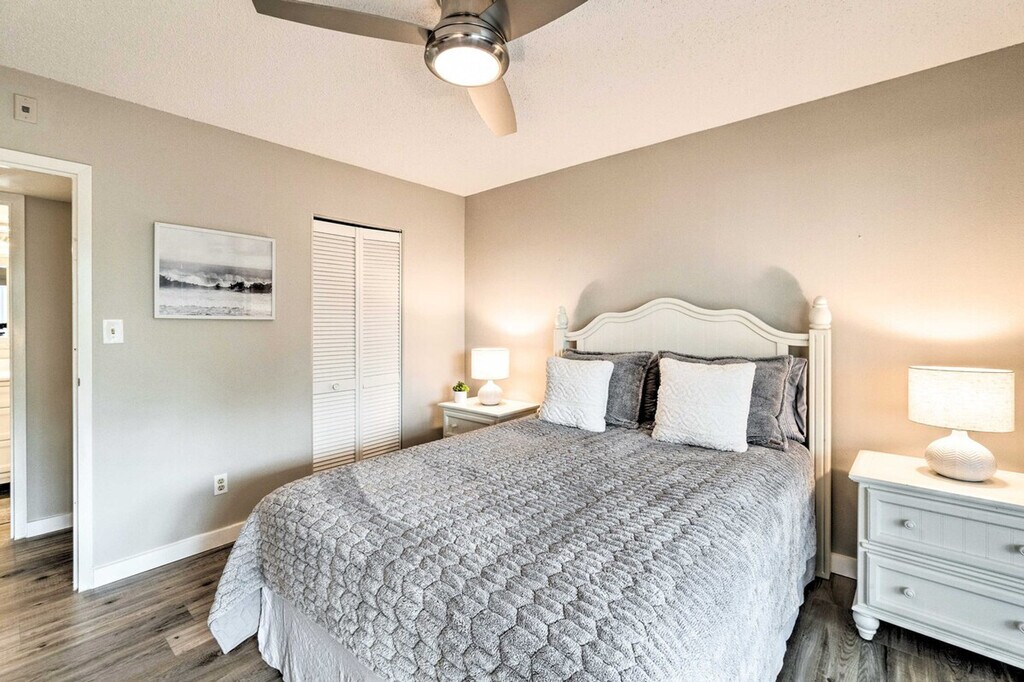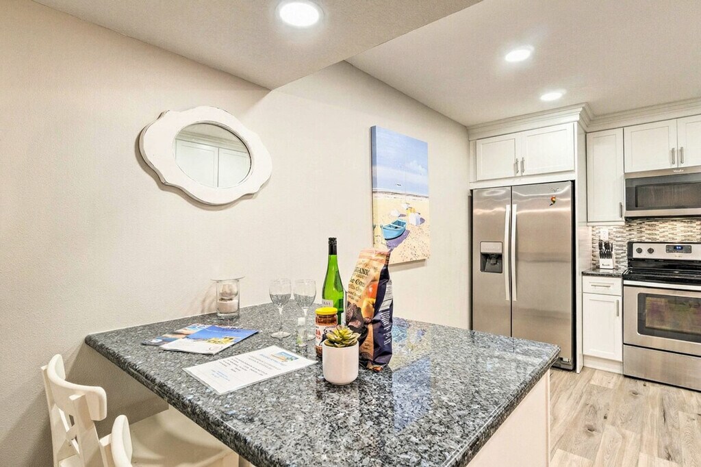 Feel at home in this modern 2-bedroom condo in Peppertree Bay, offering 1,600 square feet of living space. This single-story condo is located on the 3rd floor and offers step-free entry via the elevator. This condo features smart TVs, a sunroom, a desk workspace, a dining table, a breakfast bar, an en-suite bathroom, and a walk-in closet. Beach towels and snorkeling gear are provided for your enjoyment. The kitchen is equipped with a stove/oven, refrigerator, dishwasher, microwave, dishware/flatware, cooking basics, a drip coffee maker, a toaster, and starter trash bags and paper towels. You'll also find a washer/dryer, laundry detergent, an iron/board, hangers, linens/towels, a hair dryer, central heating and A/C, and ceiling fans. Community amenities include on-site beach access, 2 heated outdoor pools, a grill pavilion, a fitness center, tennis courts, and a ping-pong table. Parking is available in the community garage for one vehicle and in the community lot on a first-come, first-served basis. Have fun in the Florida sun without leaving the gates at this Siesta Key vacation rental. Head out to shop at St. Armand’s Circle, try some local seafood at nearby restaurants, or rent jet skis at Siesta Key Watersports. The condo is located 7 miles from downtown Sarasota. Smoking of any kind is not allowed inside the home or anywhere on the property. Events, parties, or large gatherings are not allowed. Guests must be at least 25 years old to book. Includes a desk workspace. The community is gated. [SI]
