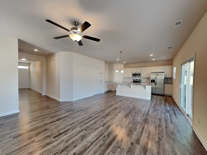 All Bridge Homes listings are pet-friendly and offer easy self-tours, schedule yours today! Transparent Pricing with Resident Benefits Package included: $1907 Base Rent, $29 RBP, and $59 Group Rate Internet, for Total $1995. This contemporary two-story home offers an expansive, open-concept layout perfect for modern living. The light-filled interior features beautiful wood-look flooring throughout the main level, leading into a stylish kitchen equipped with granite countertops, sleek white cabinetry, and stainless steel appliances. Upstairs, you'll find a versatile carpeted loft and a spacious primary suite, complete with a dual-vanity bathroom and a large walk-in shower. The exterior is just as inviting, with a charming brick-accented facade, a two-car garage, and a private backyard with a concrete patio, ideal for weekend relaxation. All Bridge Homes residents are automatically enrolled in our Resident Benefits Package (RBP), designed to enhance your leasing experience. Your advertised rent already includes this $29 monthly package no hidden fees. RBP delivers valuable services like a personalized utility concierge, air filter delivery, credit building, and resident rewards. Full details available upon request. This home comes with high-speed internet up to 1 Gig at an exclusive group rate of $59.00, and includes 24/7 premium support and setup to help you get connected at move-in. Equal Housing Opportunity. This property allows self guided viewing without an appointment. Contact for details.