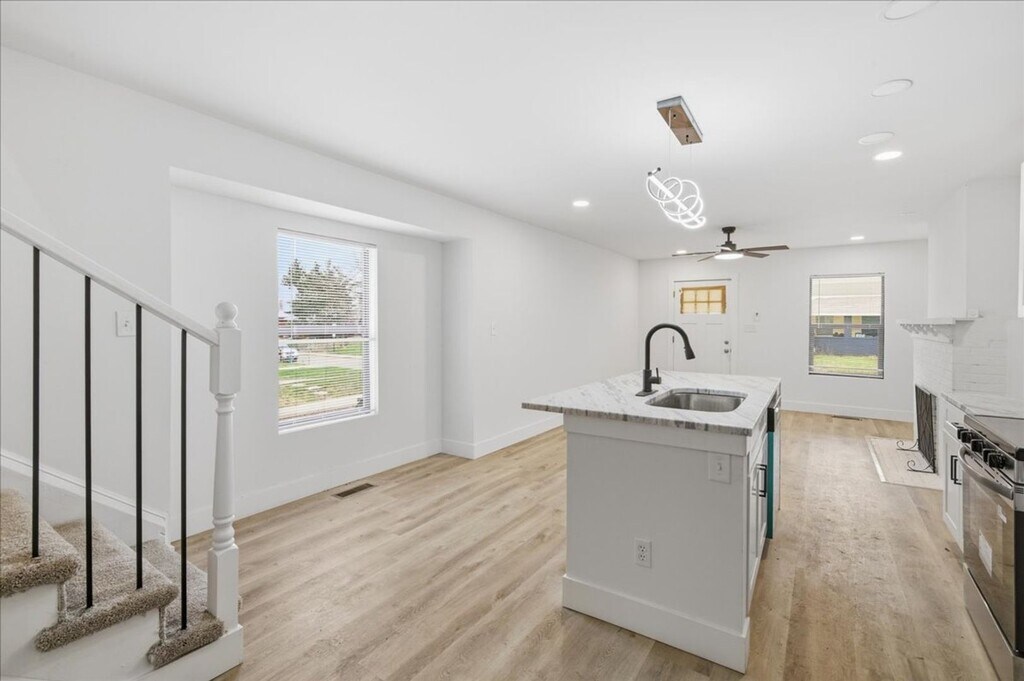 Don't miss your opportunity to call this beautifully renovated property your new home! This 4 bedroom 2 bathroom unit is fresh off a meticulous down to the studs renovation and is loaded with high end finishes and ready for new tenants. Conveniently located just south of Brookside Park, this 1342 sqft unit features easy to maintain LVP flooring throughout, a gorgeous stone waterfall island and countertops, custom shaker cabinets, brand new stainless steel appliances, a main floor master suite with full bath, custom tile backsplashes and showers. high end modern lighting, private fenced in back yard, a massive basement for additional storage and private garage and off street parking. Prime location and luxury finishes, who could ask for more?! Added bonus, both sides of this duplex are available, so bring your family or friends and pick your own neighbors!