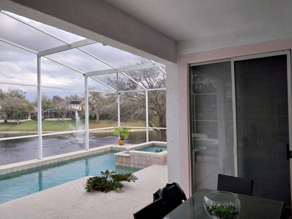 Welcome home to this beautiful pool home sits overlooking a beautiful pond. On the corner, adjacent to a community park. This easily maintained home features a open floor plan, a grand foyer entry, a formal living room with French door, a large family room for entertainment, a formal dinning room, spacious eat-in kitchen with appliances, breakfast bar, closet pantry, a utility room with tub and cabinets, a covered porch and a screened lap pool for the swimming lover. A gorgeous water view from the family room, master bed room and one of the bed rooms. The other bedrooms has Jack and Jill bathroom. There are 3 cars garage with brick paved driveway. Tile flooring is throughout the entire home. It’s convenient to major theme parks, restaurants and shopping centers and easy to access all major highways. This home is zoned for top rated schools and pass Sand Lake elementary school is in the Big Sand Lake Park with great biking and walking paths, soccer fields and both a playground and water park. Emerald Forest Community boasts great amenities including tennis/basketball courts, pool and playground. Resort type of living, a place to call home.