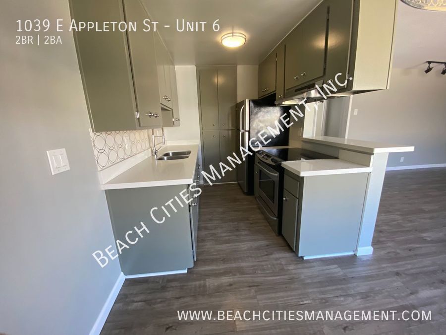 Important Note: The vinyl in the living room, hallway, and bedrooms will be replaced with carpet. This charming condo offers all the space you've been searching for and is just blocks away from the beach! This 2 bedroom 2 bath features carpet and tile. Fresh interior paint with new quartz countertops in kitchen & bathrooms. The bathrooms offer custom tile, painted vanities, quartz countertops, and stylish mirrors. There is an on-site coin-operated laundry room. Single car private garage in the rear. Some small pets will be considered with an additional deposit. Pet Policy: Small dog only & cats accepted. 1 small pet maximum Pet Application Required at