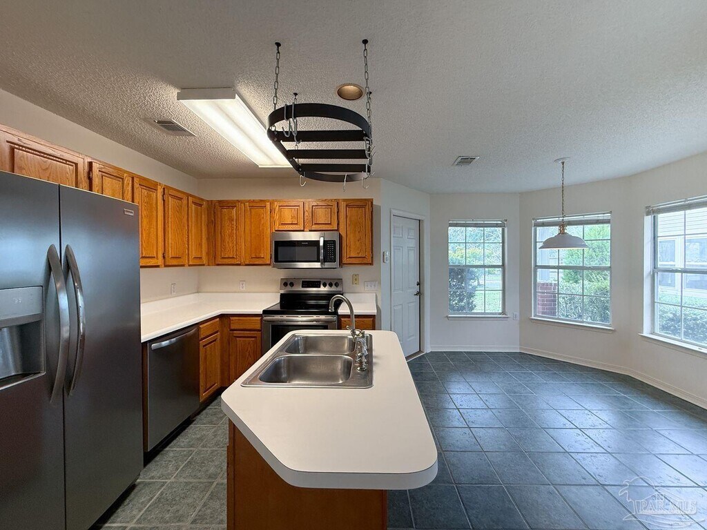 Welcome to 1039 E Maxwell St.,a beautifully maintained 3 bedroom,2 bath home in the heart of Pensacola’s East Hill neighborhood. This home is just minutes from Downtown Pensacola,Pensacola Beach,and a short bike ride or walk from local favorites like breweries,coffee shops,and restaurants that make this area so loved by locals. Step inside and you’re greeted by a bright,spacious living room filled with natural light. The open layout flows seamlessly into the kitchen and dining area,where charming bay windows overlook the backyard. The kitchen comes fully equipped with a refrigerator,stove/oven,dishwasher,and built-in microwave plus a kitchen island. A laundry room includes a stackable washer and dryer for your convenience. The split floor plan offers privacy,with the primary suite featuring a walk in closet and a private en suite bathroom. Two additional bedrooms and a second full bath provide plenty of space for family,guests,or a home office. Step outside to enjoy a fully fenced backyard with a patio. A two car garage provides additional parking and additional storage. This home is pet friendly up to 2 pets 100 lbs. or less. Prior approval & nonrefundable pet fee required. No restricted breeds. Ask us about our Military special! If you’re looking for a well kept home that blends comfort and charm,1039 E Maxwell St is the perfect place to call home!