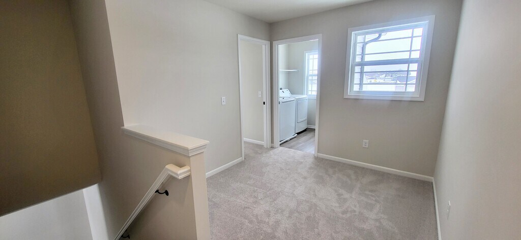 This newly built home has 4 Bedrooms, 2.5 Baths, Loft and 2-Car garage. Great Room is open to Kitchen and Dining Nook. 12 x 10 Patio off the Nook. Kitchen has breakfast bar, quartz counters, ceramic backsplash, stainless dishwasher, smooth-top stove, microwave, and fridge. 6 x 6 walk-in Pantry off kitchen. Owner Suite with ceiling fan and has a large walk-in closet and Bath with dual sink vanity and 5' Shower. All Baths have quartz countertops. Vinyl plank flooring and carpet in home. 9 x 9 Loft and 6 x 6 Laundry upstairs with washer and dryer. Home has Simplx Smart Home Technology capability. Wonderful and convenient location. 12 Month lease preferred. Tenant pays all utilities and is responsible for lawn and snow maintenance. No smoking, no pets.