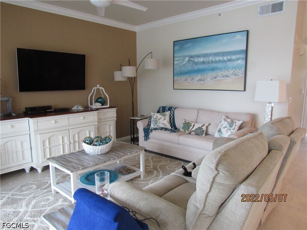 AMAZING VIEWS & STUNNING 3RD FLOOR BROOKSIDE WITH UPGRADES GALORE! This beautifully updated Brookside model offers 2 bedrooms and 2 bathrooms,tastefully decorated and showcasing breathtaking views of the Big Lake and golf course. The unit features elegant porcelain tile flooring throughout the main living areas,with laminate flooring in both bedrooms. The upgraded kitchen includes granite countertops,stainless steel appliances,and additional cabinetry in the dining area for extra storage. Enjoy enhanced details such as crown molding,updated lighting,plantation shutters,Hunter Douglas blinds,and a convenient pull-down shade. Relax on the screened lanai while enjoying your morning coffee,watching golfers,or taking in the serene wildlife and water views. Just bring your golf clubs and take full advantage of the 36 holes of championship golf in this highly desirable bundled golf community. Residents enjoy an active and social lifestyle with access to 8 Har-Tru tennis courts,multiple swimming pools,a lodge with tiki bar and live music,a newly renovated clubhouse and grill room,and a new activities center offering fitness classes,pickleball,bocce,themed events,cards,mahjong,book clubs,and more. Ideally located near I-75,Southwest Florida International Airport,spring training stadiums for the Boston Red Sox and Minnesota Twins,shopping,dining,entertainment,and the stunning beaches of Sanibel and Fort Myers. Come experience the best of the Florida lifestyle!