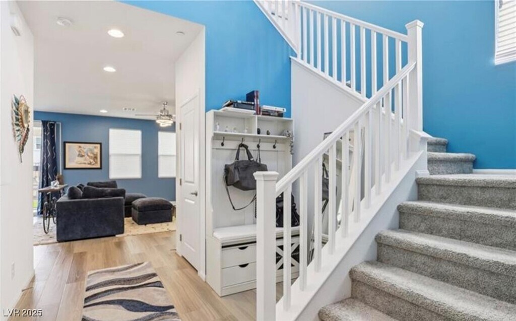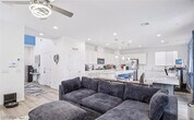 Beautifully upgraded two-story home in gated community in Skye Canyon! This modern home is only 2 years old with gorgeous upgrades throughout including raindrop chandelier, beautiful pendant lighting and amazing upgraded fans. Includes a fully upgraded living room with large electronic fireplace and 100 HD TV for enjoyable entertaining! Backyard has been fully upgraded with turf installation and private walking path. A must see!"