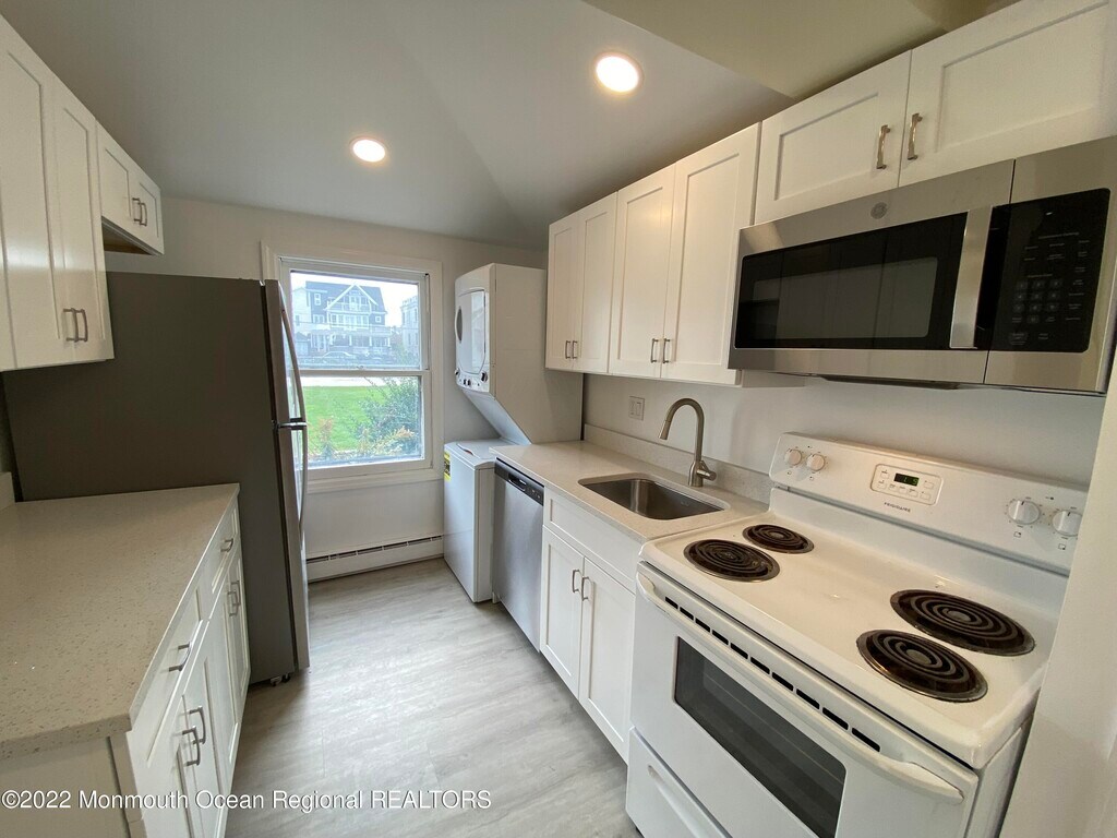 Fantastic oceanside cottage available for annual rental. This nicely appointed cottage was just renovated and features fresh paint,new LVT plank flooring,new kitchen with white Shaker cabinets & quartz countertops,new bathroom with sleek vanity & custom tiled stall shower,two bedrooms and an attractive living room with lots of windows. The home is equipped with a stainless steel refrigerator,dishwasher,built-in microwave oven & new stackable washer/dryer. It has a fantastic covered front porch,a private driveway for up to two cars and a front patio/yard area. Home is located approximately 100 feet from Ocean Ave - so so close to the beach,boardwalk & seaside attractions! No smoking. Small pet (25lbs or less) considered on a case by case basis for an additional $50/month.