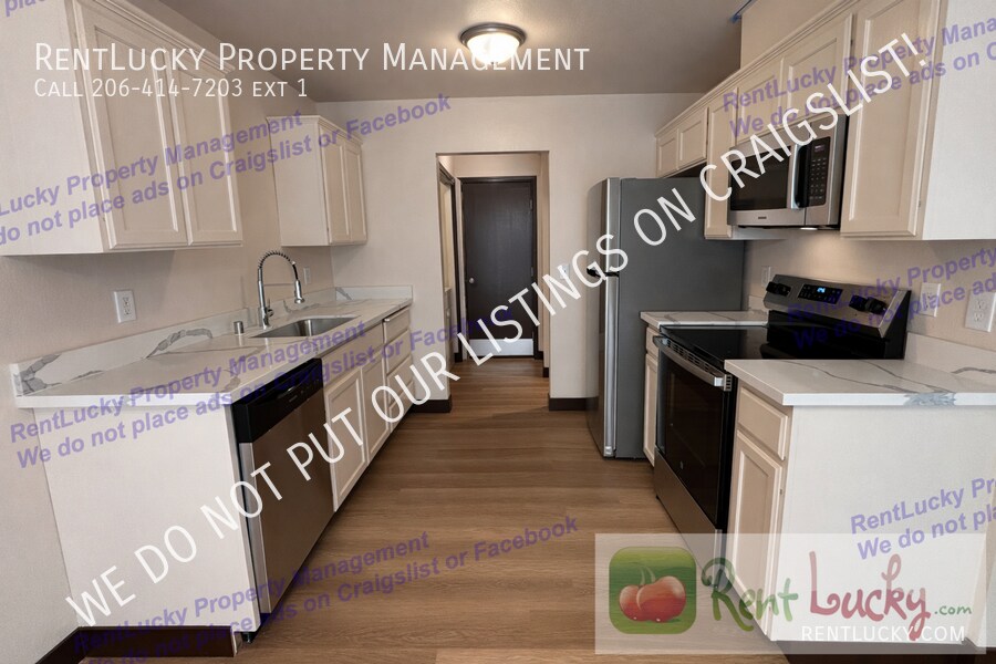 Practically like new! Make this remodeled 3 bedroom, 2.5 bath duplex your new home! This roomy, amazing home features brand new luxury plank flooring throughout downstairs and bathrooms, new carpet upstairs, full interior paint, new Quartz counters in kitchens and baths and new sinks and faucets. Gorgeous kitchen has freshly-painted cabinets and brand new stainless steel appliances. Other features include huge fenced back yard, cozy gas fireplace and large 2-car garage. Convenient access to Hwy 7, 512 and I-5. Close to Spanaway Lake and Spanaway Park. Easy access to restaurants, shopping and schools. All appliances provided, including washer and dryer. Home is on septic, so no sewer costs! All other utilities to be paid for by tenant. Don't wait, make an appointment to see this home today! BEWARE OF SCAMMERS! If you see a Craigslist OR Facebook Marketplace ad for this house at a lower price or an ad that does NOT mention RentLucky Property Management, SCAMMERS have posted the other ad. RentLucky does NOT put our listings on Craigslist NOR Facebook Marketplace. If you have been dealing with a SCAMMER, please reach out to RentLucky immediately at . TIPS & TRICKS to a Successful Leasing Experience with RentLucky! ARRANGE A TOUR: Visit our website at