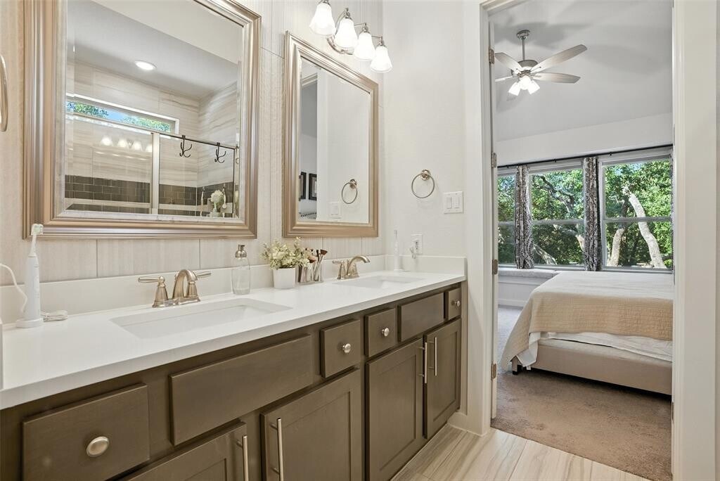 6-14 month lease term. Short term and/or furnished option may be available. Call listing agent for details. Lock and Leave - All lawn maintenance and pest control covered by landlord. Immaculate home in sought-after Wolf Ranch available for lease. Nestled on a cul-de-sac corner lot, this property offers a private extended driveway with ample parking and backs to a greenbelt with community trails. No neighbors behind. The backyard is a retreat with mature live oaks, lush landscaping, stone edging, and a covered patio with shade screen. Inside, no expense has been spared: wood-look tile flooring throughout, custom designer tile to the ceiling in every bathroom, and premium finishes at every turn. The chef’s kitchen boasts granite countertops, a custom backsplash, gas range, built-in oven/microwave, upgraded cabinetry hardware, and window coverings. Location is unmatched - close to Wolf Ranch Elementary and minutes to shopping, dining, and all Georgetown has to offer. This meticulously maintained property combines luxury, convenience, and peace of mind.