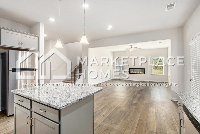 NEWLY AVAILABLE! Be the FIRST to live in this beautiful new construction home--all that's missing is your personal style! This bright and spacious home boasts an open floor plan with modern LVP flooring, recessed lighting, and a cozy electric fireplace—ideal for both relaxing and entertaining. A versatile front flex room offers the perfect space for a home office, playroom, or bonus room to suit your needs. The sleek kitchen is a chef’s dream, featuring stainless steel appliances, granite countertops, a stylish tile backsplash, and a center island with bar seating. All four bedrooms are located upstairs with laundry for your convenience. The luxurious primary suite includes a private bath with a dual vanity, a walk-in shower, and a large walk-in closet. Step outside to the walkout rear patio—perfect for enjoying your morning coffee or unwinding in the evening. Schedule your showing today! BEWARE OF SCAMMERS. Only apply for this home through We DO NOT advertise on Facebook Marketplace or Craigslist, and we will NEVER ask you to wire money or pay in cash. The price listed is based on a 12-month lease for an approved applicant. Prices and special offers are valid for new residents only. All leasing information is believed to be accurate; however, prices and special offers may change without notice and are not guaranteed until the application has been approved. Additional fees may apply, including a lease administration fee, damage waiver fee, and pet fees (where applicable). This property allows self guided viewing without an appointment. Contact for details.