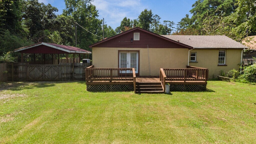 2 bedroom, single story home with a large back deck, partially fenced back yard, attached single car garage (manual entry), and a carport. Open kitchen living area plan with a propane fireplace in the living area and a propane gas range in the kitchen. Appliances include range, microwave, fridge and washer and dryer. No pets allowed. Listing agent is owner.
