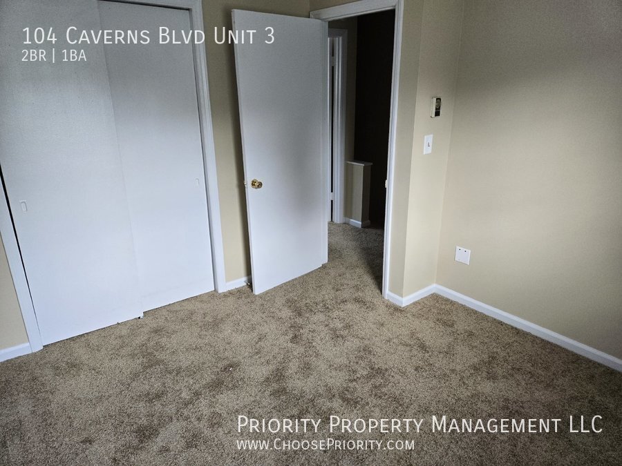 There is currently a 2 Bed 1 Bath Townhome for rent with 800 sq ft listed at 104 Caverns Blvd. It is Available Now.