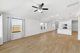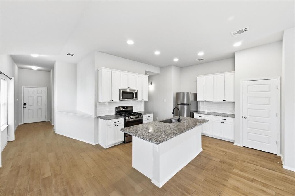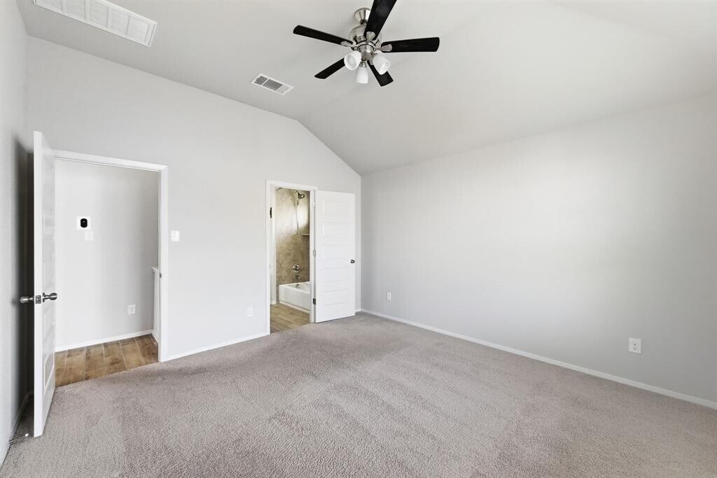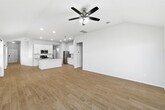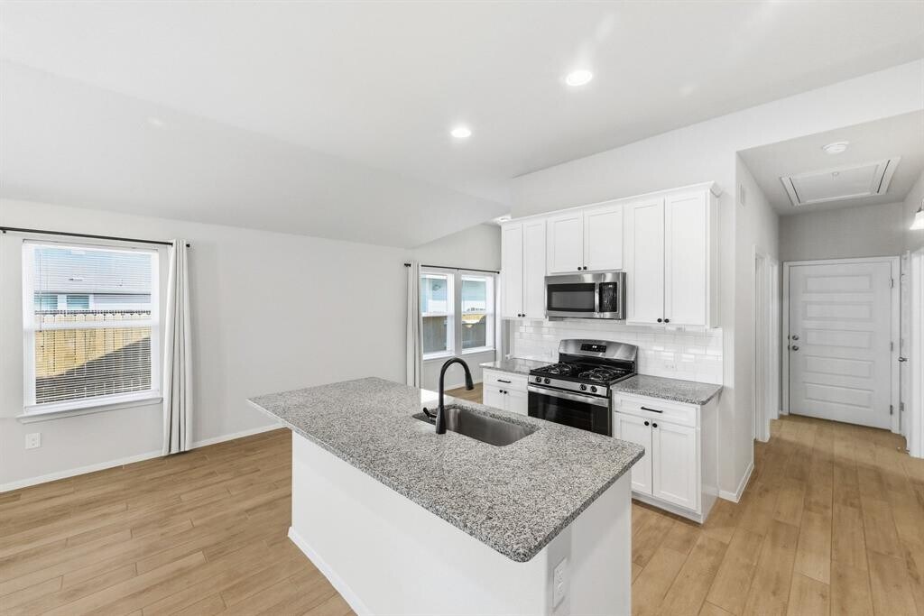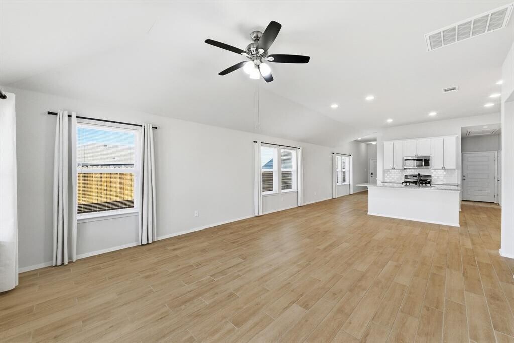 Located in Bastrop's rapidly growing Pecan Park community, this move-in-ready home offers modern finishes, an open layout, and comfortable single-story living. -Open-concept floor plan with wood-look tile flooring and abundant natural light -Contemporary kitchen with large center island, white cabinetry, subway tile backsplash, and stainless steel appliances -Spacious primary suite with high ceilings, walk-in closet, and private bath -Primary bathroom features dual vanity, oversized mirror, and tiled tub/shower surround -Secondary bedrooms with plush carpet, ceiling fans, and generous closet space -Dedicated laundry room with washer and dryer included -Covered back patio and fully fenced backyard -Neutral paint tones and modern fixtures throughout Conveniently located near Highway 71, with easy access to Bastrop, Austin, nearby schools, parks, and local shopping and dining. Pets allowed. Tenant pays utilities. Absolutely no smoking. Professionally managed.
