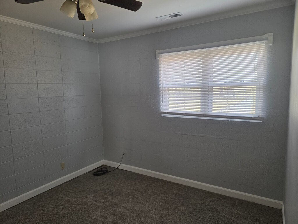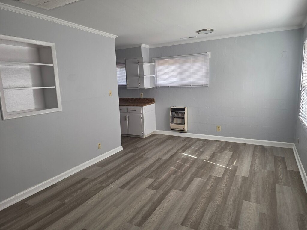 This duplex is located on a large lot on a side street off Hwy 70 Business. It has fresh paint, new flooring, and new appliances. It has lots of room and cupboard space. It is heated and cooled by a central HVAC system. There is room in the kitchen for a small dinette.