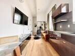 Room for rent: This private Queen room in 6 bedrooms 6 private bathroms apartment, located in Williamsburg is available on a flexible 1-18 month lease. - Bright bedroom with PRIVATE BATHROOM in Williamsburg, with tall ceiling and 3 windows, right on Graham Ave. Room has an HD TV, dresser, desk, chair, bed, Wifi and a closet. - We are looking for someone who is clean, responsible with good energy. - 17 min to manhattan, 8 min walk to the L train - Utilities are $140 per month - $30 for monthly cleaning. - Williamsburg is the most sought after neighberhoods in NYC, top destination for restaurants, bars, festivals, just coolness. Apartment is located near everything you need. - There is a one-time room cleaning and administration cost of $125