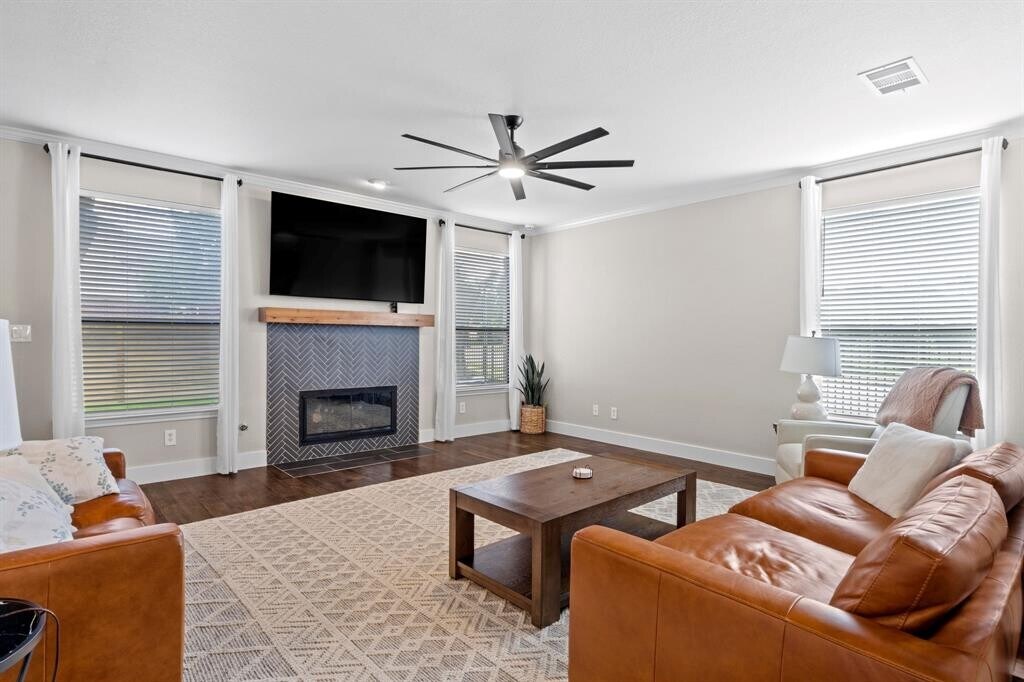 This beautifully renovated home delivers a fresh, open-concept layout with high-end finishes throughout the main level. The kitchen was completely reimagined to create seamless flow into the living and dining spaces. You'll find upgraded soft-close cabinetry, premium quartz countertops, luxury appliances, and wide-plank hardwood flooring that carries throughout. Custom touches continue with a new electric fireplace feature wall, updated staircase with modern banisters, and thoughtful details that elevate the entire space.