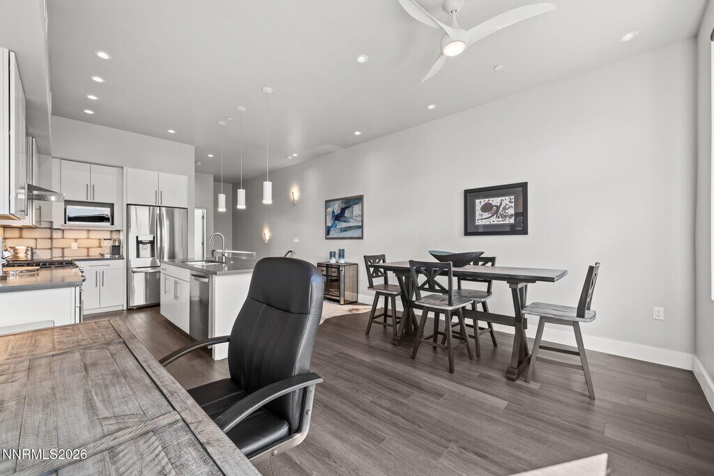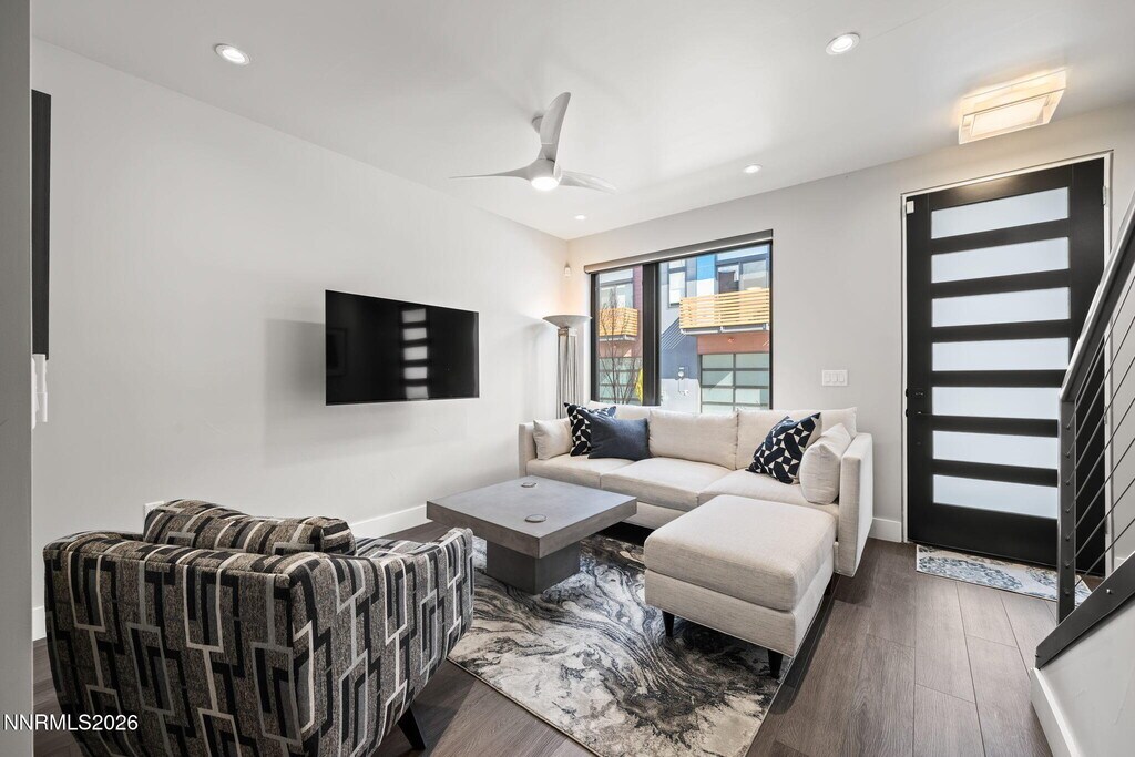 FULLY FURNISHED TOWNHOME includes UTILITIES,LANDSCAPING,and FLEXIBLE LEASE TERMS. Live the best of DOWNTOWN LIVING just steps from the river,10 Torr Brewing and Distilling,and the restaurants,coffee shops,and nightlife of MIDTOWN. Built in 2020 with NEARLY NEW CONSTRUCTION,this modern home features a bright OPEN FLOOR PLAN,quartz countertops,custom soft-close cabinetry,a GAS COOKTOP,STAINLESS STEEL APPLIANCES,and a large KITCHEN ISLAND perfect for entertaining. Enjoy your PRIVATE BALCONY,the convenience of an ATTACHED GARAGE,and a dedicated LAUNDRY ROOM for easy everyday living. Stylish,move-in ready,and right in the heart of it all — this is urban Reno living at its best. MUST SEE TO APPRECIATE. MLS# 260002767