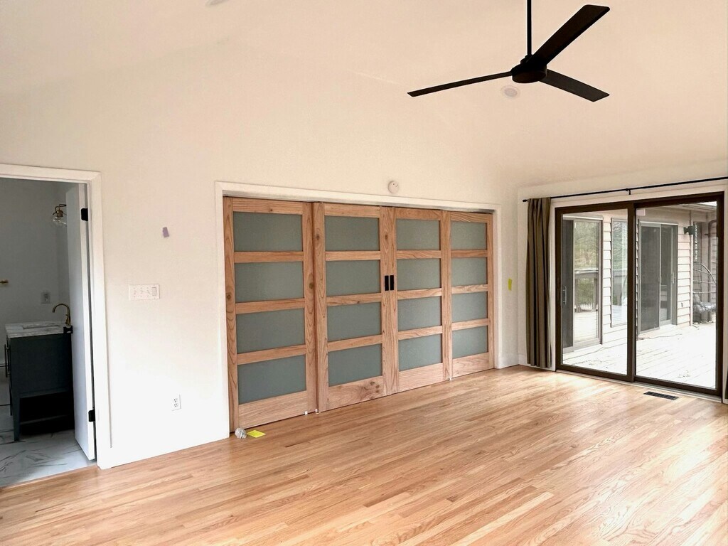 Modern contemporary home for rent in the heart of the sought-after gated community, Kingsmill on the James. This stunning property has undergone a full renovation, offering a bright retreat. The open-concept living area features a dramatic floor-to-ceiling fireplace and vaulted ceilings, flowing out to a large deck overlooking a beautiful, private wooded ravine. Premier Features Include: Gourmet Kitchen: Light and bright design with a huge kitchen island, ample storage, and high-end finishes. Owner's Suite: Large, newly renovated bathroom (completed before move-in) and a generous walk-in closet. Flexible Space: Beautiful sunroom with wooden sliding doors doubles perfectly as a bright third bedroom or home office. Extras: Hardwood flooring throughout, fenced-in backyard, and walk-in encapsulated storage. The Kingsmill Lifestyle: Enjoy the security of gated access and incredible amenities, including three pools, three playgrounds, miles of walking trails, golf courses, river access, and community police. You are conveniently located close to I-64, Ft. Eustis, Yorktown Naval Station, Busch Gardens, and the historic areas of Colonial Williamsburg and Jamestown Settlement. Rental Details: 3-Bedroom, 3-Bathroom. Available starting January 15th 2026. Pets welcome upon approval! Rent includes Trash and HOA fees. (Golf Course membership is separate and not included). This fully renovated, rare opportunity won't last long! Apply today!