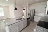 If you've been searching for a truly luxurious townhome located in a prime location, look no further! 104 Kineton Woods Way checks off all those boxes and many more. This end unit townhome is available for immediate occupancy and will surely satisfy the most discerning of resident. A private driveway with an attached, 2 car garage welcomes you home, while a winding sidewalk leads around to a covered porch. Once inside, you're greeted by tall ceilings, an abundance of natural light and beautiful luxury plank flooring as far as the eye can see. This home was constructed with today's lifestyle in mind and it's the epitome of the open-concept design. The foyer opens on the right to an expansive family room with a ceiling fan, no less than 4 picture windows, and a design that lends itself to easy furniture placement. The family room seamlessly intertwines with an adjacent dining area as well as the kitchen. The dining area is perfectly-proportioned and enjoys easy access to the kitchen as well as a sliding door that opens-out to a private rear patio overlooking a massive backyard; quite rare for a townhome. The kitchen is undoubtedly the center attraction" of the living space and you'll surely agree it's a place in which you'll enjoy spending time. A massive, granite-topped island includes a breakfast bar, a stainless double-bowl undermount sink, a dishwasher and additional cabinet space. The dual custom pendant lights look amazing at night! Beautiful white craftsman-style cabinetry flanks two sides of the island. They're accentuated by additional granite counters as well as a subway-tiled backsplash. A suite of sleek stainless-steel appliances (including a smooth-top oven and a refrigerator with ice/water in the door) are as attractive as they are functional. Before heading upstairs, be sure to visit the attached garage with direct interior access as well as a coveted drop-down space with a bench, cubbies and coat hooks just inside the entry. At the top of the stairs, you're greeted by a loft that not only provides invaluable additional living-space, but also serves to isolate the primary and secondary bedrooms with a design that provides the utmost privacy and noise isolation. The primary bedroom includes a ceiling fan double picture windows and double clerestory windows that flank both sides of the headboard of a bed. The en-suite bathroom is quite luxurious! Here, you'll find luxury plank floors, a quartz-topped elevated vanity with dual undermount sinks, a water closet and a walk-in shower with a transom window, a glass entry, two footrests and 4 soap/shampoo shelves. Finally, a walk-in closet rounds-out the primary suite experience. Not to be outdone, bedrooms #2 and #3 are both generously proportioned with lovely natural light, ample closet space and easy access to a full hall bathroom, also with a quartz-topped vanity and dual sinks (no more arguing about who brushes their teeth first) and a tub/shower. Before heading downstairs, you'll also notice the conveniently-located laundry room with a washer/dryer included for resident's use."