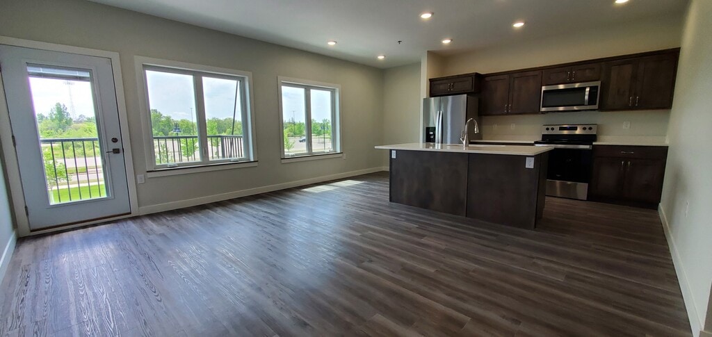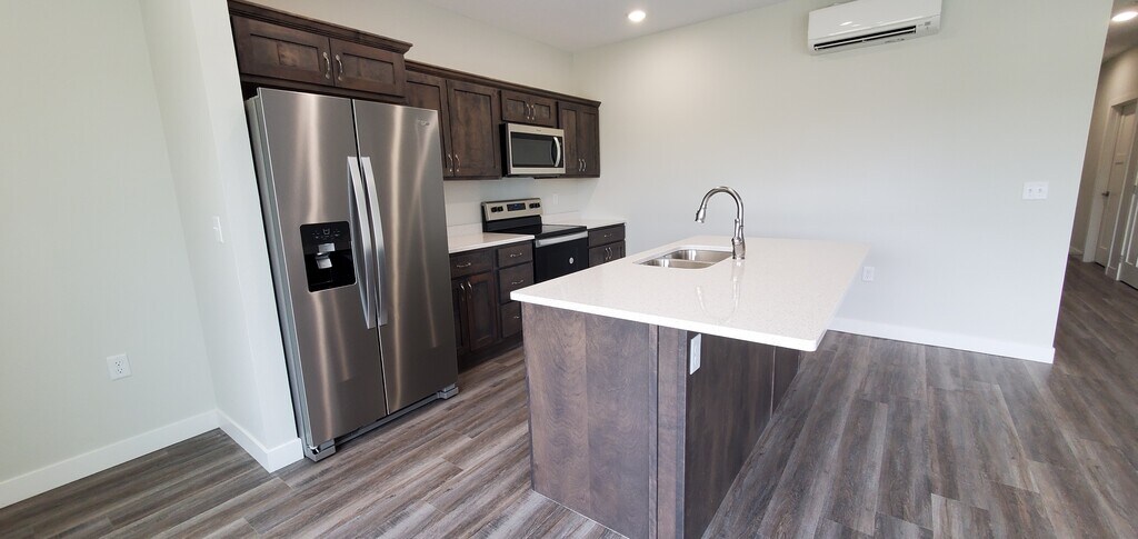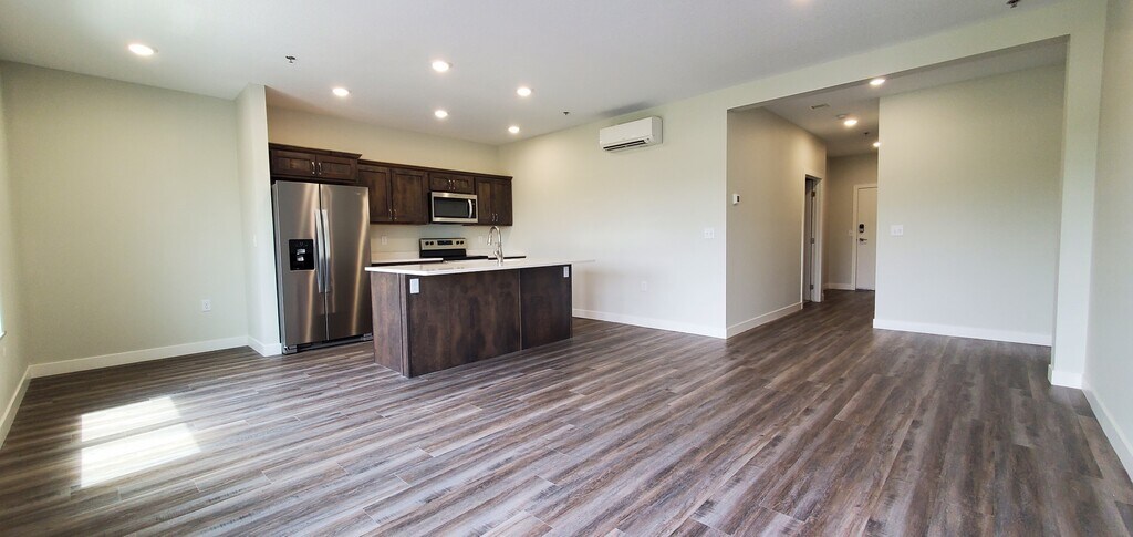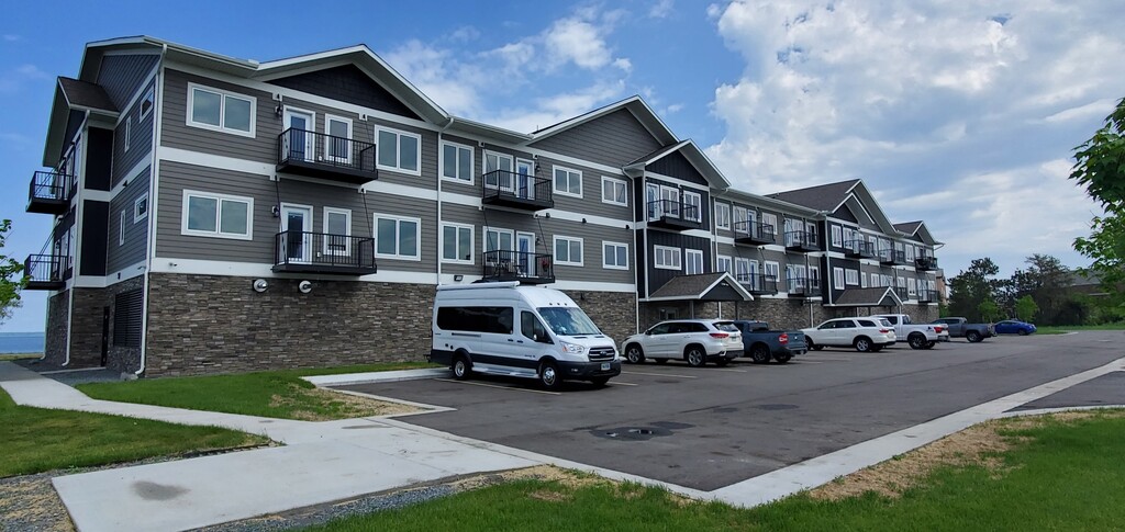 The Bixby will offer secure indoor parking, two elevators, triple pane windows, soundproof insulation, and private balconies. Quartz countertops and an Onyx Shower system in unit. This floor plan, The MacGregor, offers 1 bedroom 1 bath and 830 sf., a compact design with emphasis on the Great Room, a separate laundry area and that great southern exposure. This unit is on the first floor with a great view, just feet away from the Lake Bemidji shoreline, public beach and docks, the Paul Bunyan Trail system, restaurants, entertainment and more. This unit is move in ready! The Bixby Features: * Secured Indoor Parking (one stall per unit) * Two Elevators for ease access. * High quality Samsung appliances * Quartz countertops * 9' ceilings * in unit laundry hook ups * Private balconies with high quality aluminum decking * Large triple pane windows * Noise cancelling insulation throughout. Rent will include natural gas, water, sewer and refuse, lawn care, snow removal and more. Tenants will pay their own electric and cable/internet. Named in honor of May O. MacGregor, who left Bemidji in 1918 to serve in the Army as a nurse during WWI in France. MacGregor received several medals, including a handwritten citation from King George V. MacGregor units are cozy 1 BR units with an emphasis on the living spaces. Situated on the beautiful southern shore of Lake Bemidji, with the Paul Bunyan Trail in front, the new Nymore Beach just to the West, within walking distance to the Sanford Center and several restaurants. The Bixby Features: * Secured Indoor Parking (one stall per unit) * Two Elevators for ease access. * High quality Samsung appliances * Quartz countertops * 9' ceilings * In unit laundry hook ups * Large triple pane windows * Noise cancelling insulation throughout