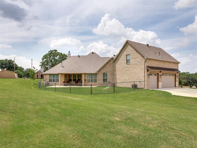 This absolutely stunning custom built home in highly coveted Brock ISD is nestled under a canopy of mature trees and sits perfectly on a 1.4 acre lot. Kept to perfection & designed to meet the most discerning tenant's every expectation who is looking for that country feel in one of the best school districts in N Texas! The exquisite front elevation & lushly landscaped front yard greet your arrival and set the stage for you to be dazzled by what’s to come on your tour. The front foyer leads directly to the 2-story vaulted ceiling family room w-stone clad wood burning fireplace & opens across a spacious breakfast bar-island to the gourmet kitchen w-high end SS appliances, gorgeous granite c'tops, custom shaker style cabinets & a huge walk in pantry to delight the family chef! The split primary suite down features a wall mounted fireplace, separate vanities, huge walk in closet, a 2 person stand up shower & a soaking tub for those precious few moments of peaceful solitude. the oversized 2nd & 3rd bedroomss are down & share a Jack-n-Jill bath. The 4th bedroom is up with a separate sitting area & private bath perfect for the multi-gen family or college student living at home, & the 5th bdrm-study down opens off the family room, perfect for the work from home professional! The spacious covered patio out back overlooks the sprawling backyard, perfect for the kids to run and play, or just to enjoy the peace and quiet of country living. This is not your typical rental property so if country living is what you desire please move this one to the top of your list. Available for immediate occupancy!