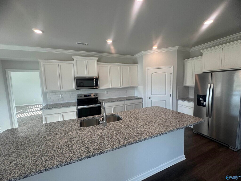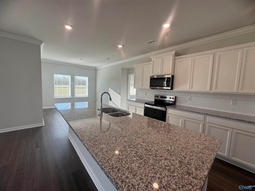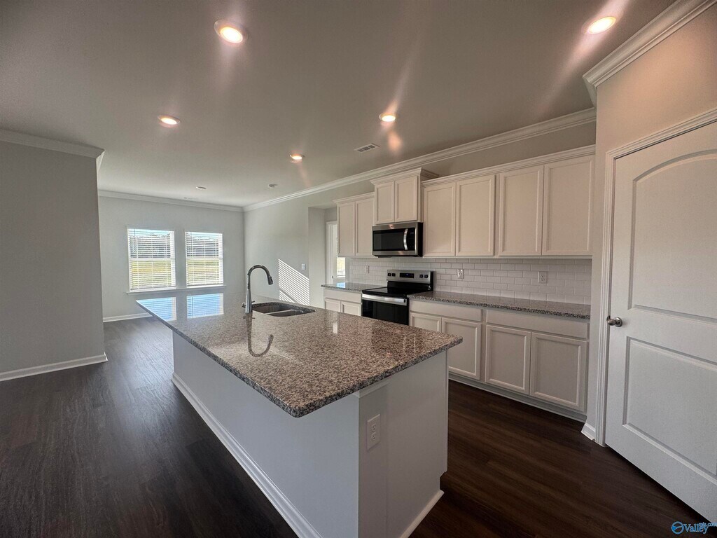 Open living area that features formal & casual dining areas,great room with trey ceiling & large island with granite or quartz countertops,stainless appliances,& a tile backsplash! All tied together with crown molding & LVP Floors. The spacious primary suite has a gorgeous tile shower,a soaking tub,& large closet. From the 3-car garage entry is a convenient powder room. With five bedrooms,there is plenty of room for the entire family & guests. Smart Home!