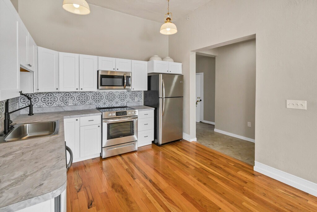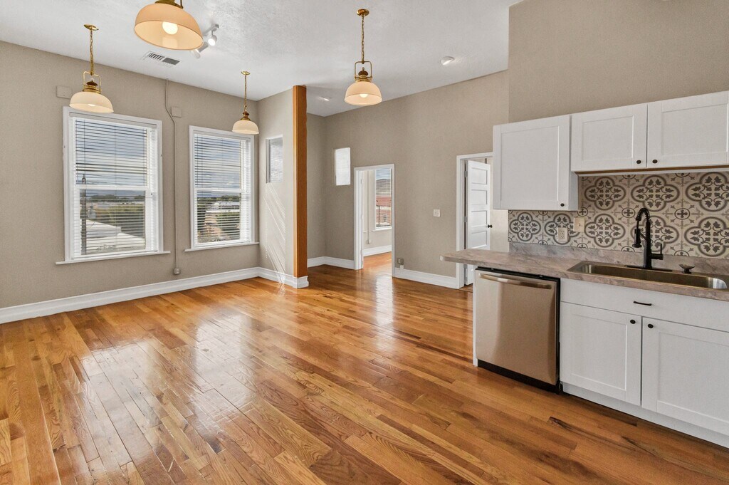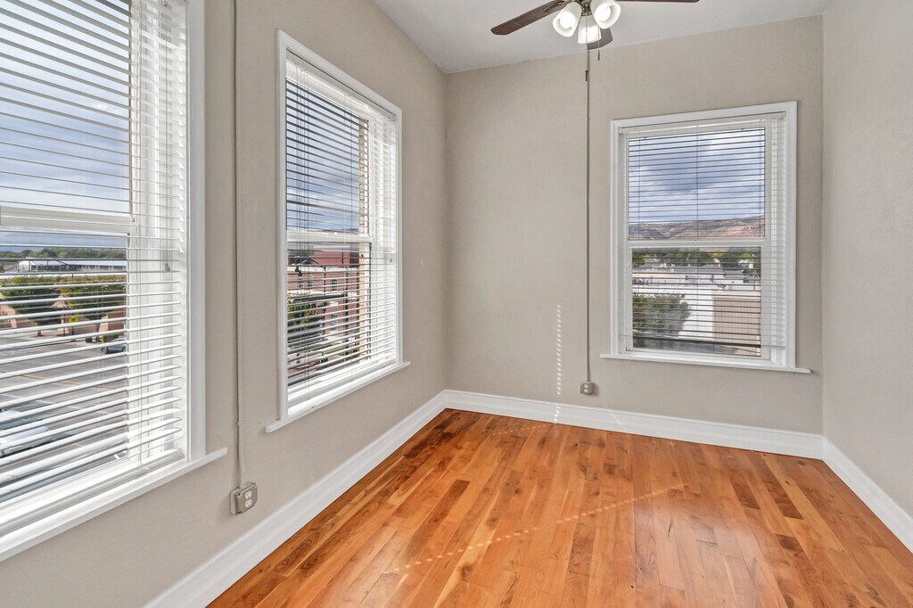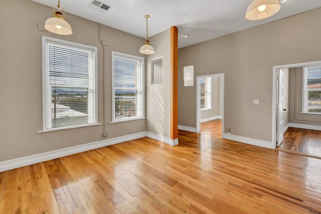 Now available —Check out this beautiful updated 3-bedroom, 2-bath apartment located on the third floor of the historic Vintage Vault Building in downtown Richfield, Utah. This spacious unit features gleaming hardwood floors, high ceilings, and large windows that bring in plenty of natural light. The modern kitchen includes stainless steel appliances, updated cabinetry, and stylish tile backsplash, offering a perfect blend of character and contemporary design. The open layout provides a comfortable and flexible space ideal for a small business professional or anyone who appreciates the charm of vintage architecture with modern updates.Enjoy being just steps away from Main Street shopping, dining, and local conveniences.On-site parking available. Utilities and lease terms to be verified with management.