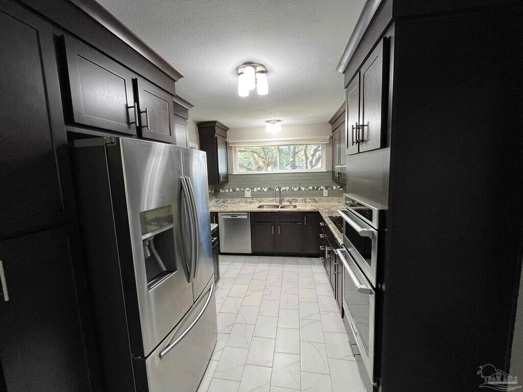 Nicely updated 3 bedroom,2 bath in Gulf Breeze proper! Beautiful kitchen and remodeled baths,wood & tile floors in living areas and carpet in the bedrooms. There is a one car garage plus an oversized driveway with plenty of room for guest parking. This is a full size lot with beautiful live oaks plus there is an storage building in the backyard for the yardman or hobbyist. Walk to the parks,waterfront and state-of-the-art recreation center from this home. Boat launch just 3 minutes away and the also the award winning Gulf Breeze schools. Available APRIL 1st,2026.
