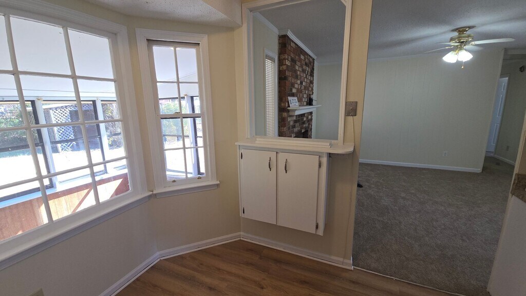 Welcome to this stunning 4-bedroom, 3-bathroom home located in the vibrant community of West Columbia, SC. This property boasts a range of amenities designed for comfortable and convenient living. The home features a spacious eat-in kitchen area, perfect for casual dining, and a separate dining room for more formal occasions. The master bedroom is conveniently located downstairs, with a second master bedroom providing additional flexibility. Both master bedrooms come with walk-in showers for a touch of luxury. The home also includes a sunroom at the rear of the house, offering a perfect spot to relax and enjoy the view of the fenced-in backyard. The covered front porch adds to the home's charm and curb appeal. Inside, you'll find a mix of LVP and carpet flooring, adding warmth and style to the space. The decorative fireplace in the living room provides a cozy focal point. Each bedroom is equipped with ceiling fans for added comfort. The home also includes washer/dryer connections for your convenience. Please note that renters insurance is required. Experience the perfect blend of comfort and convenience at north104.