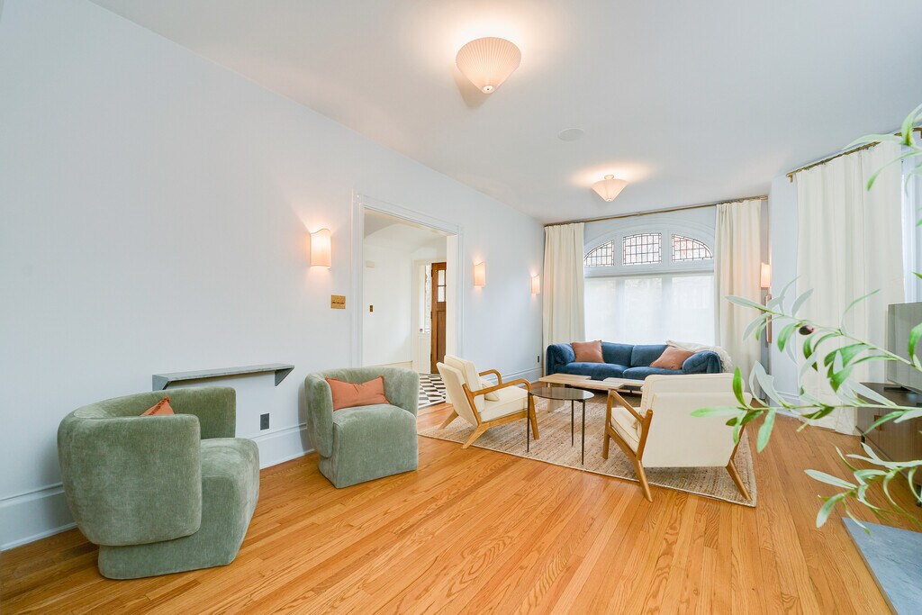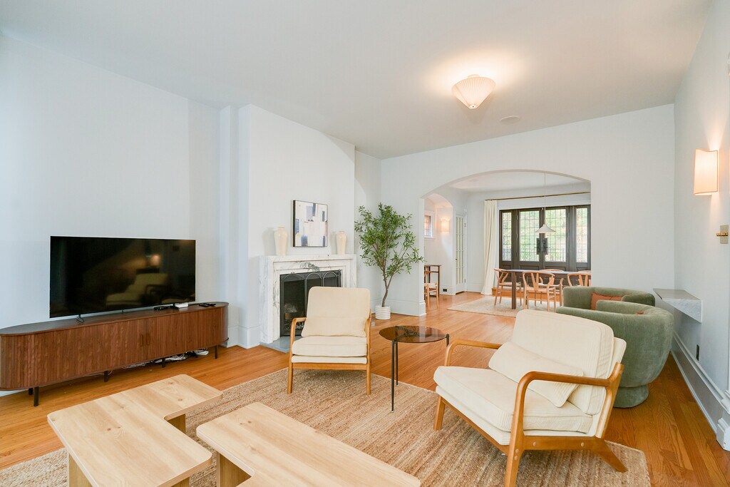 Rarely does a home of this caliber become available for short term stays. 104 Park Road is a completely turnkey solution where every conceivable aspect of the home is ready to receive you. Just bring your suitcase & start living. This classic residence underwent a stunning & complete transformation in 2021, orchestrated by the acclaimed interior designers Michelle R. Smith & Hayley Bridget Cavagnolo. The result is a rare & exquisite blend of timeless elegance & contemporary luxury, offering a refined yet wonderfully warm & inviting atmosphere. The home features 4 bedrooms & 5 meticulously designed bathrooms, with every detail thoughtfully curated. The main level immediately captivates with unique, hand-painted flooring-a subtle yet powerful testament to the home's high level of craftsmanship. Everyday moments are elevated by the cinematic charm of a wood-burning fireplace, one of 3 in the residence, anchoring the gourmet kitchen. The chef's kitchen is a dream, outfitted with a Wolf range and Sub-Zero Pro refrigeration, complemented by an oversized eat-in area & a seamless walk-out to an expansive deck. This outdoor space effectively functions as an extension of the living area, perfect for both formal entertaining in the dining room & casual Sunday brunches. The dedicated butler's pantry further enhances functionality & adds an extra layer of luxury. Entertaining is effortless with a built-in Sonos sound system wired throughout the entire home & the private, resort-style backyard. This outdoor oasis is centered around a saltwater pool with smart technology for heating & lighting. The third floor is a private sanctuary, featuring a family lounge, dedicated workspace, a guest bedroom with a full bath, & a private rooftop deck. For ultimate relaxation, the lower level offers a spa-level sauna.