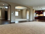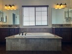 2,380 sq. ft. House with four bedrooms & two bathrooms. Large kitchen with kitchen island, walk-in pantry, granite countertops, tile backsplash, and built-in microwave, it also has a wall oven and cooktop. (NO FRIDGE). Porcelain faux wood tile located in the high traffic areas. Carpet located in the living room, dining room, and bedrooms. The living room has a built-in fireplace. Full guest bathroom with granite countertops and porcelain faux wood flooring. Carpet in bedrooms. The primary bedroom has a walk in closet, an en suite with granite countertops, dual sinks, granite shower surround, a huge garden tub, and a separate commode. The laundry room also has a granite countertop and overhead cabinets. Large xeriscape backyard with covered patio. Also has plenty of room for RV with wrought iron gates and block wall surround. Xeriscape front yard. Central air conditioning and forced air heating.
