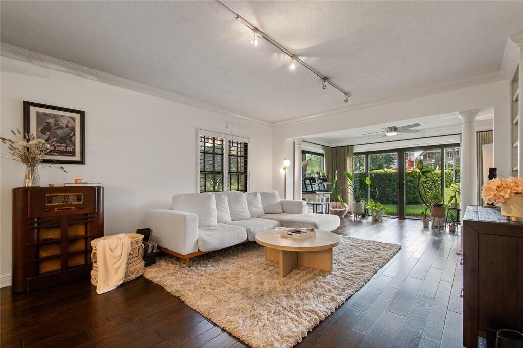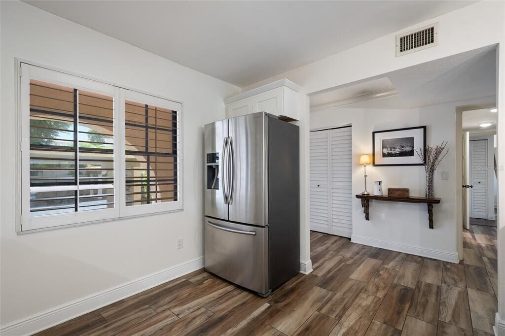 Welcome to the Cloisters,an exclusive lakefront condominium community in Winter Park,now available for lease. This first-floor two-bedroom,two-bath residence offers a thoughtfully updated open-concept layout and direct garden access. Entering from the main hallway,you step into a welcoming interior where the kitchen sits to the right,featuring a breakfast bar that connects seamlessly to the dining and living areas. The open living space extends into a versatile sunroom,ideal as an office,library,or den,with a ceiling fan and sliding doors leading out to the gardens and pool. To the left of the entrance,a hallway leads to the private quarters. The hall bath,first on the left,includes a tub-shower combination and single vanity. The second bedroom,which can also function as a home office,offers dual access from the hallway and the living area and features plantation shutters,as well as built-in closet. At the end of the hall,the primary bedroom offers garden views and a walk-through closet that leads to the en-suite bath; appointed with a spacious single vanity,ample storage and a walk-in shower. The closet also includes a full-size stacked washer and dryer for convenience. Residents enjoy a host of amenities including a lakefront clubhouse,heated pool,fitness centers,and boat slips available by lottery. This is a rare leasing opportunity in one of Winter Park’s desirable lakefront communities. The lease includes water,sewer,trash,cable,internet,lawn maintenance and pool service. Tenant is responsible for electric. MLS# O6360008